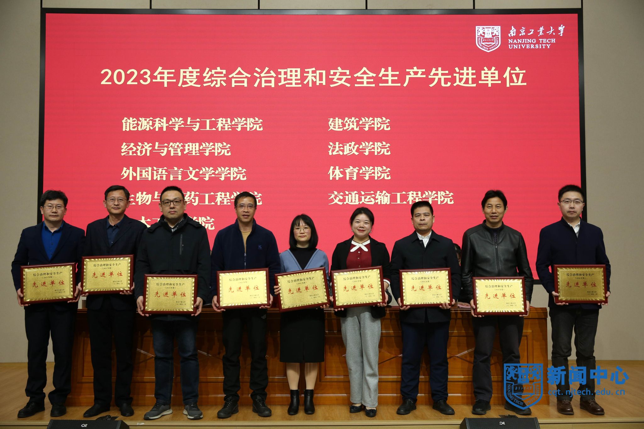 劉大衛(wèi)宣讀了2023年度校綜合治理和安全生產(chǎn)先進(jìn)單位及個人名單,主席臺領(lǐng)導(dǎo)為獲獎集體和個人代表頒獎。土木工程學(xué)院張濤、材料科學(xué)與工程學(xué)院盧都友、體育學(xué)院陳軍、生物與制藥工程學(xué)院莊偉、計(jì)算機(jī)與信息工程學(xué)院高路先后作交流發(fā)言。劉大衛(wèi)代表學(xué)校與四家二級單位主要負(fù)責(zé)人現(xiàn)場簽訂了《綜合治理和安全生產(chǎn)責(zé)任書》。