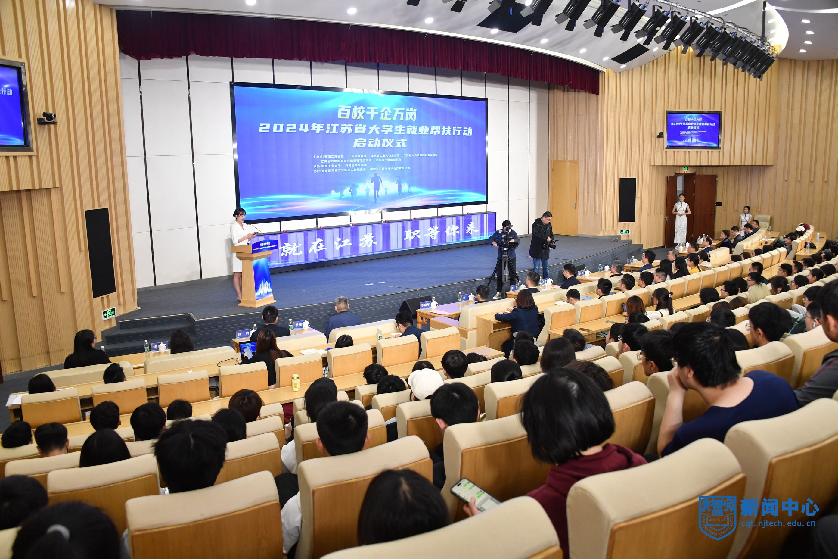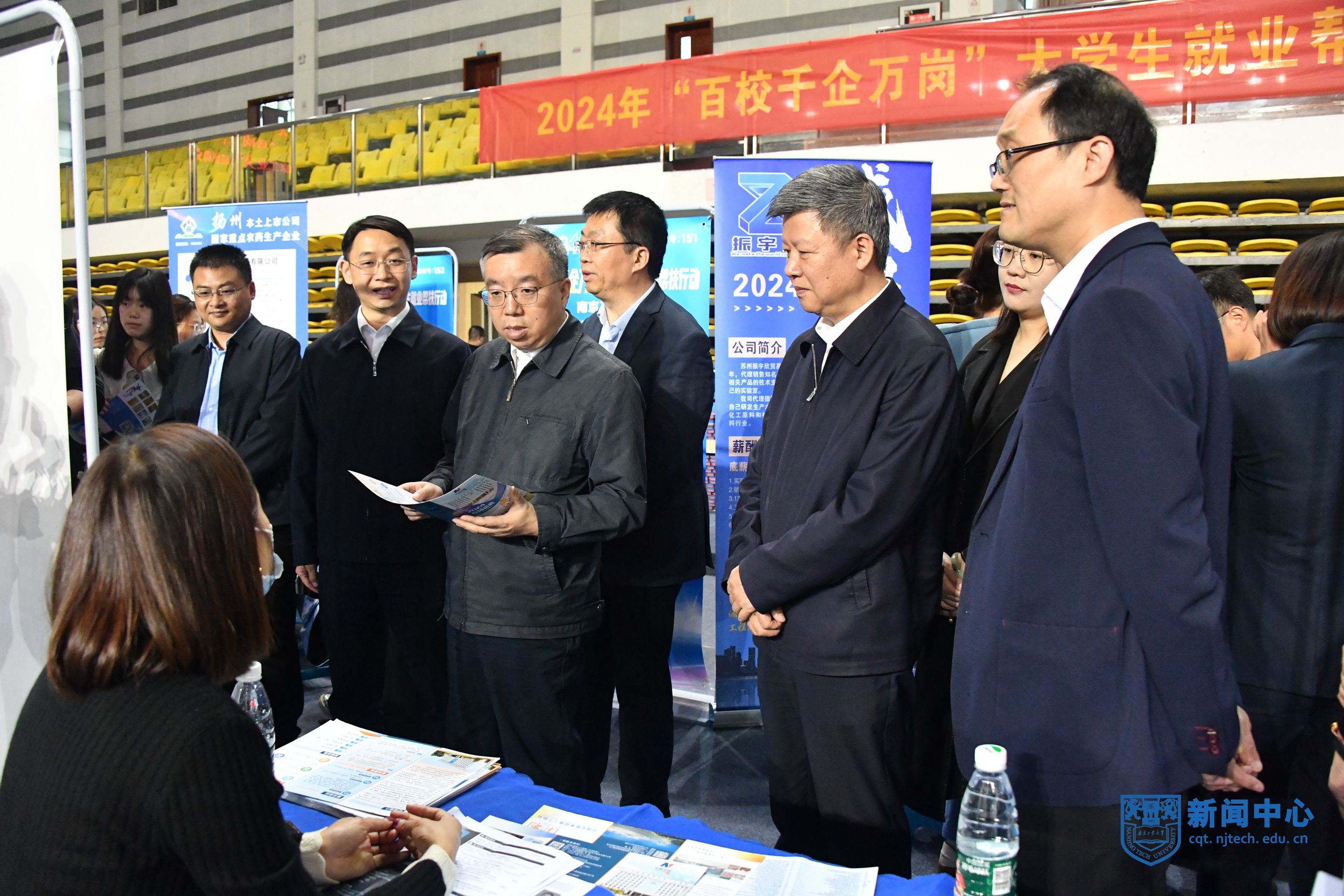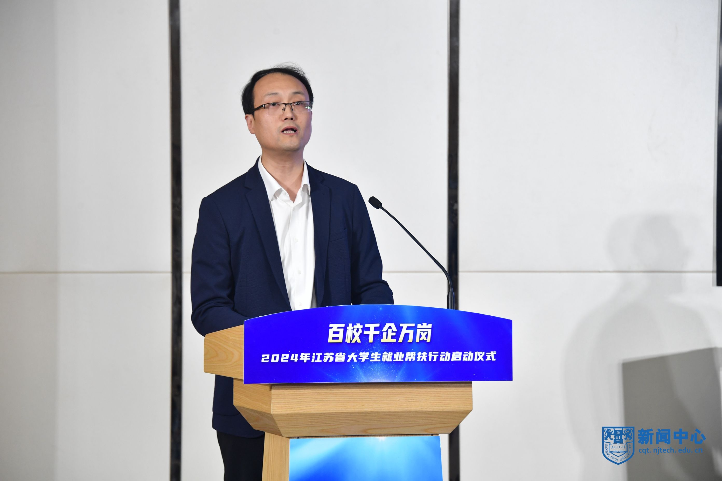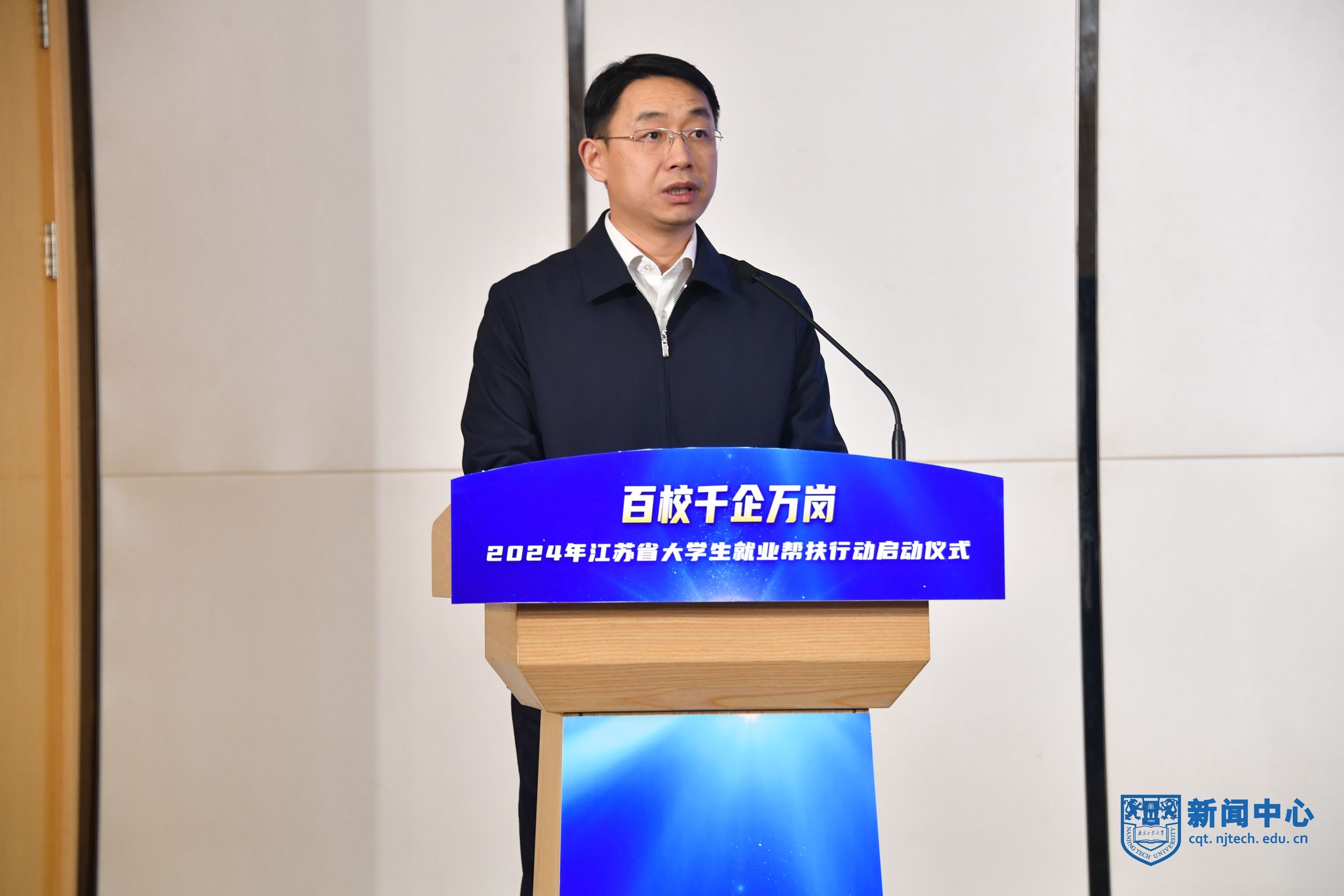 4月17日,2024年“百校千企萬崗”大學生就業幫扶行動啟動儀式暨“送崗直通車”專場招聘會在我校成功舉辦。省國資委一級巡視員關永健、省人社廳副廳長顧潮、團省委副書記熊俊、省工信廳二級巡視員曹陽、省廣電總臺副臺長何寧,我校黨委書記芮鴻巖、副校長劉大衛出席活動。