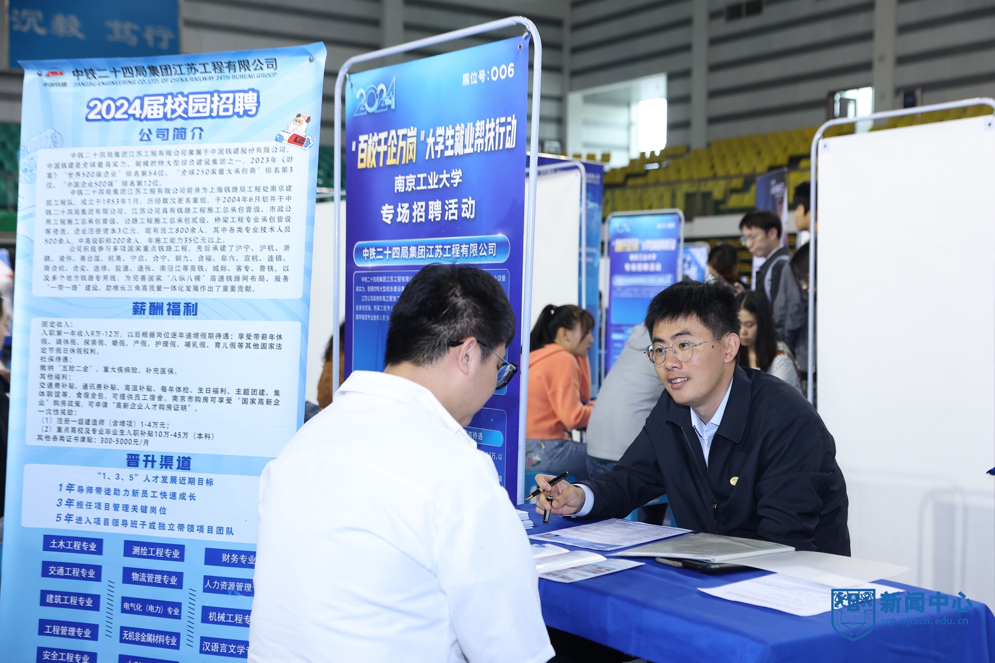 “百校千企萬崗”大學生就業幫扶行動“送崗直通車”南京工業大學專場招聘會同步在行健體育館舉辦。招聘會遴選國有企業、上市公司等優質企業159家,提供各類就業崗位3550余個,覆蓋化學、材料、計算機、藝術等多個學科門類,精準化滿足畢業生的求職期待。招聘會吸引到我校及南京信息與工程大學、南京林業大學等近2000名學生參加。招聘會上,南京團市委開展“就業嘉年華”互動體驗活動,提供政策解讀、職業規劃、簡歷診斷、面試輔導、法律援助等全方位就業服務,讓參會大學生有更好的求職體驗。此外,經濟與管理學院團委組織40余名學生參加“大學生看南京”職場體驗活動,前往江北新區規劃展覽館、定山城市客廳等實地感受地方發展,幫助提升就業認知、明確發展方向。