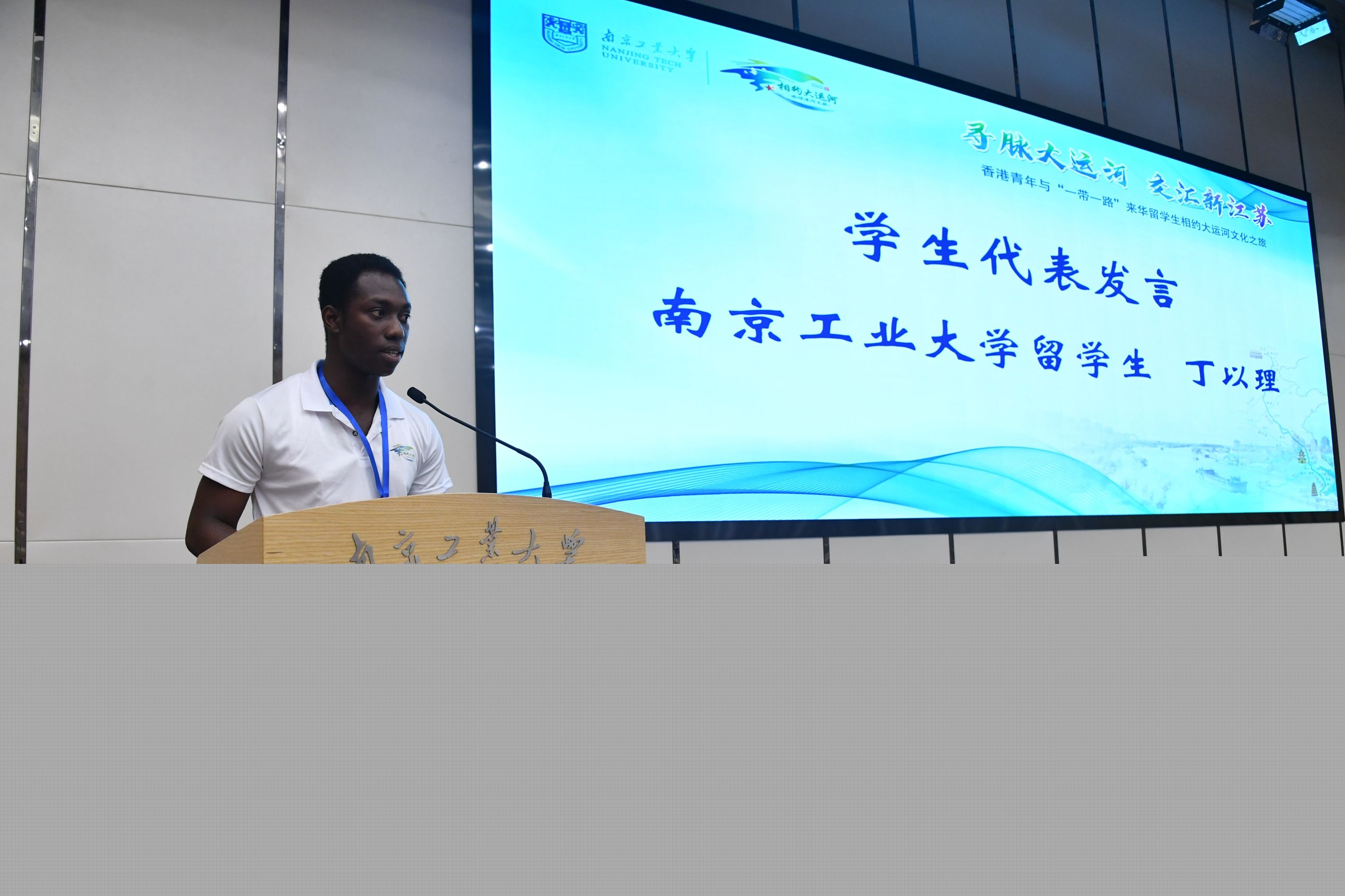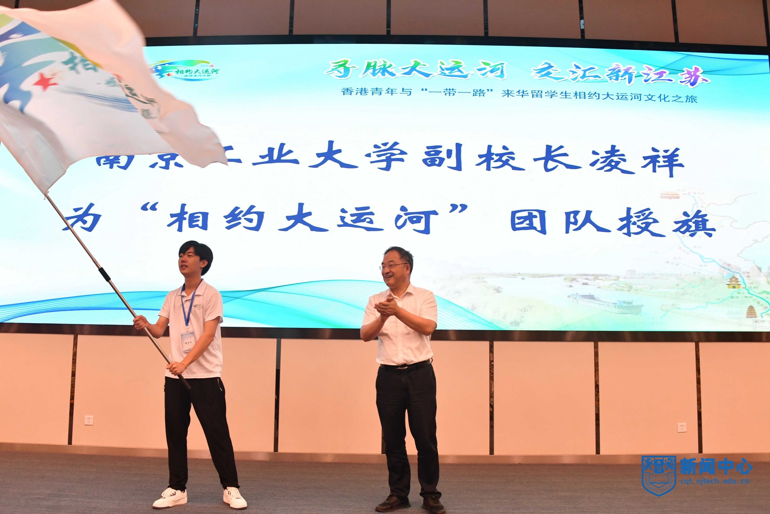 陳旻代表香港大公文匯傳媒集團致辭。香港青年學(xué)生余俊濤、來自西非多哥共和國的我校材料專業(yè)研究生丁以理分享了對這次文化之旅的期待。凌祥為“相約大運河”團隊出征授旗。與會領(lǐng)導(dǎo)共同宣布相約大運河文化之旅正式啟航。