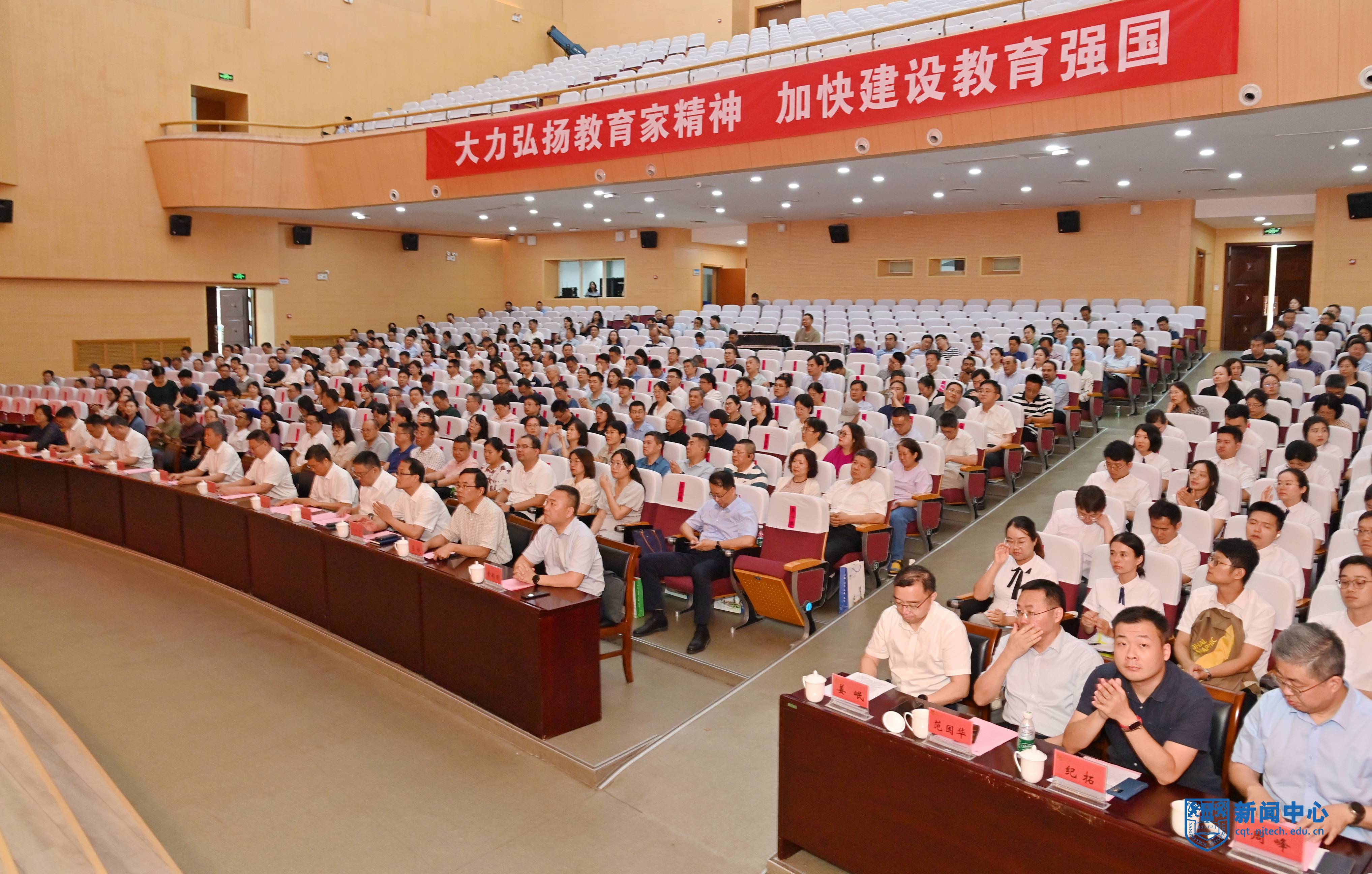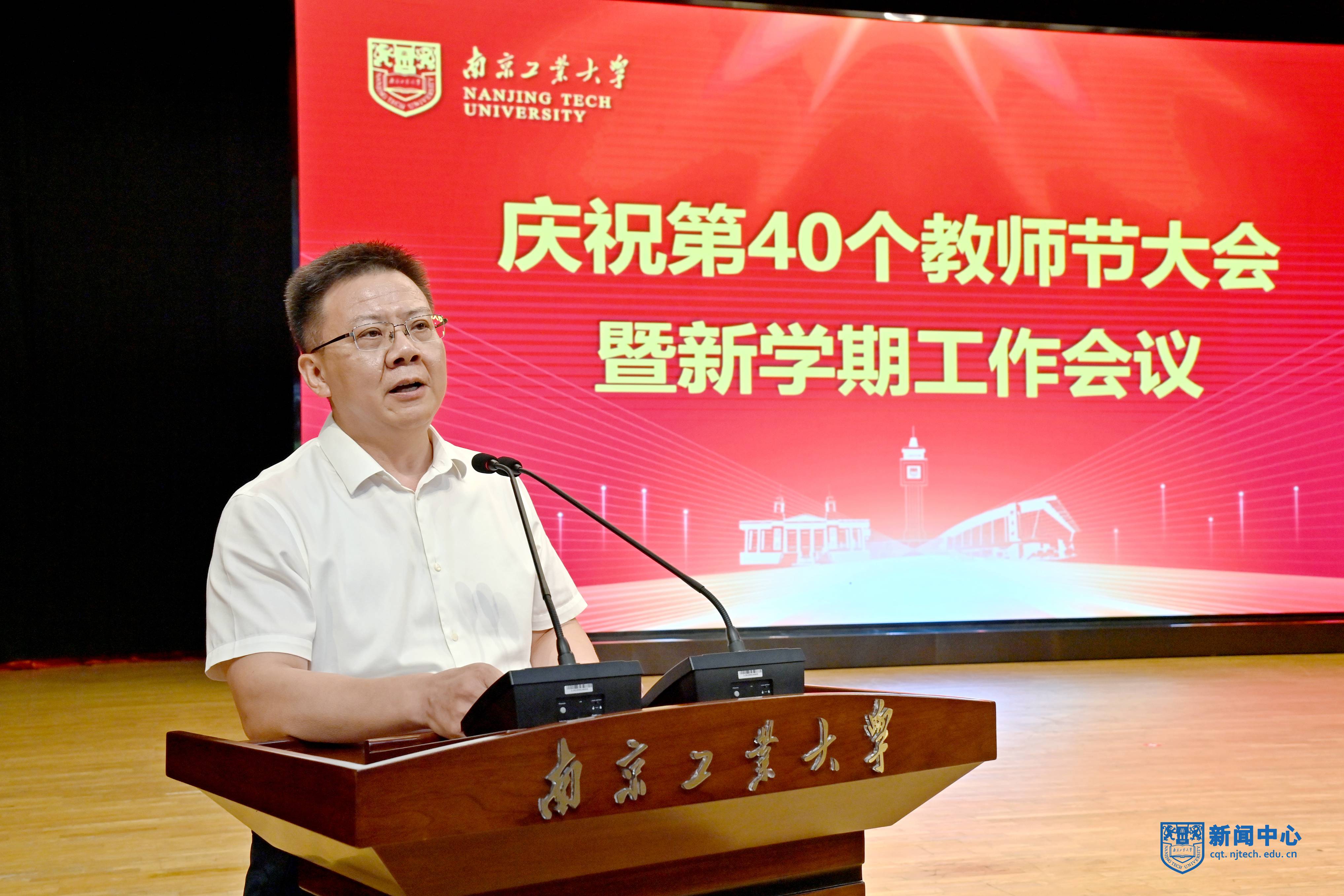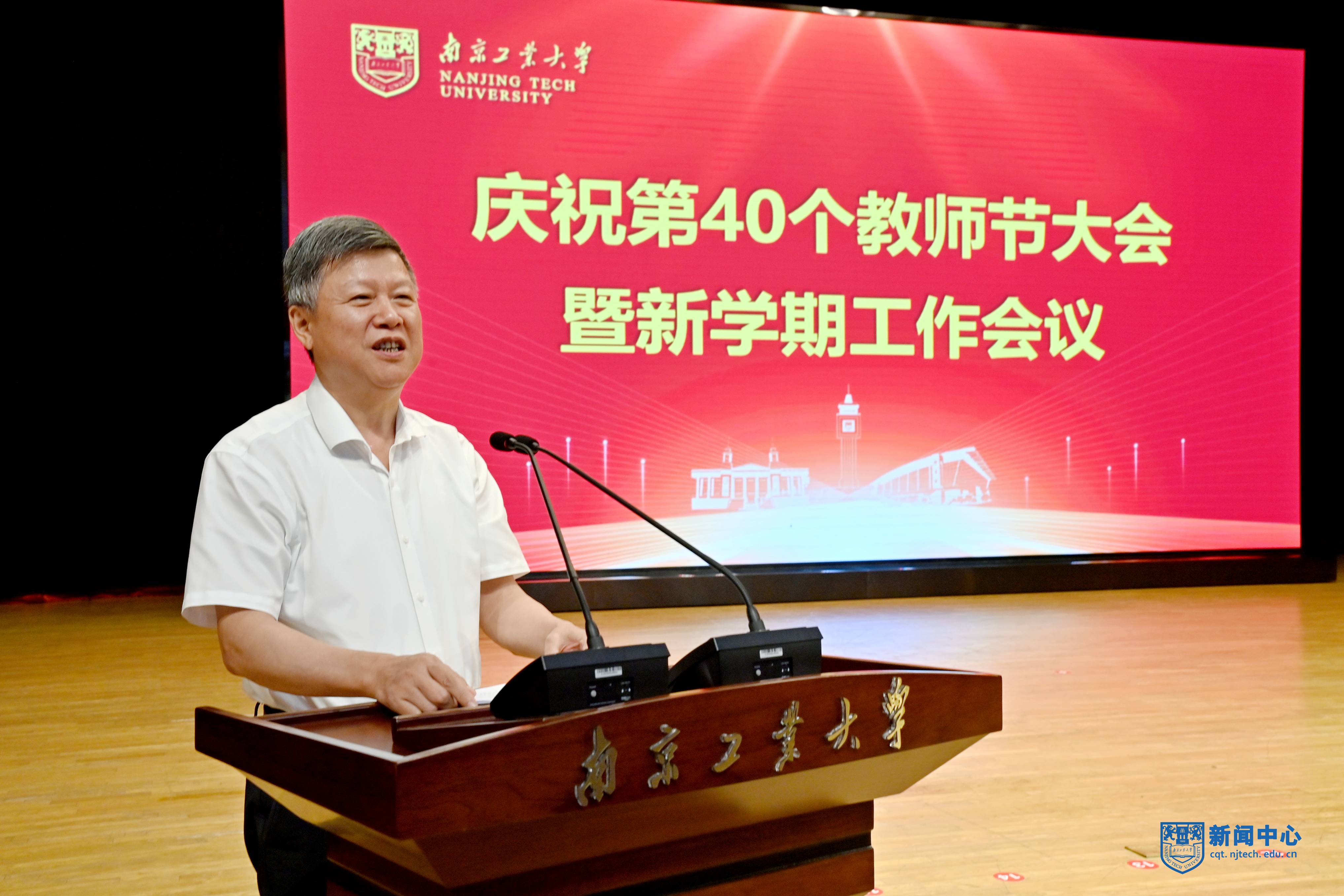 校長蔣軍成代表學校向全校教職工表達了節日的祝賀。他全面總結了上半年全校工作情況,用“一個強化”和“六個堅持”闡述了下半年學校推動高質量發展的工作思路。他指出,要強化黨的領導,以高質量黨建引領高質量發展,堅持質量立校、加強創新人才培養,堅持特色鑄校、著力學科內涵建設,堅持人才興校、優化師資隊伍建設,堅持創新強校、提升科技服務能級,堅持開放辦學、深化國際交流合作,堅持依法治校、完善校園治理體系。他希望全體教師深入學習領會習近平總書記關于教育的重要論述,堅持以教育家精神為引領,向高素質、專業化的目標努力奮進,提升教書育人能力,為加快教育現代化、建設教育強國提供堅強支撐。