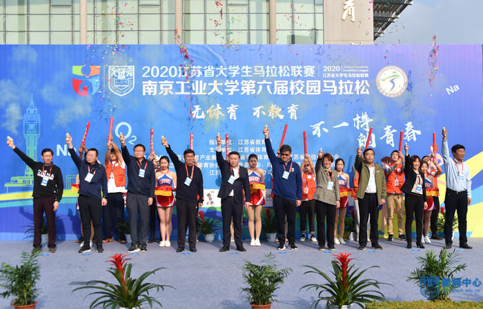 11月15日下午2點,2020江蘇省大學生馬拉松聯賽暨南京工業大學第六屆校園馬拉松在江浦校區體育館廣場鳴槍開跑。4500余名在校學生、教職工以及校友代表,用堅持和毅力展現運動風采,用活力與激情點燃整個校園。江蘇省體育競賽公司總經理劉巍,校長喬旭,校黨委常委、紀委書記王敦寶,副校長邢衛紅,校黨委常委、副校長趙志宏,校黨委常委、黨委宣傳部部長張健,校辦主任童毛弟,校工會主席彭亞輝,體育學院黨總支書記劉濤,體育學院院長張天峰等領導出席開幕儀式并為比賽鳴槍發令。