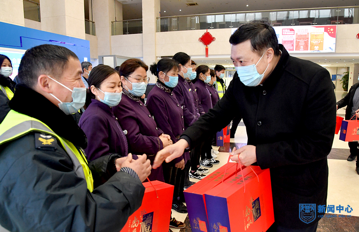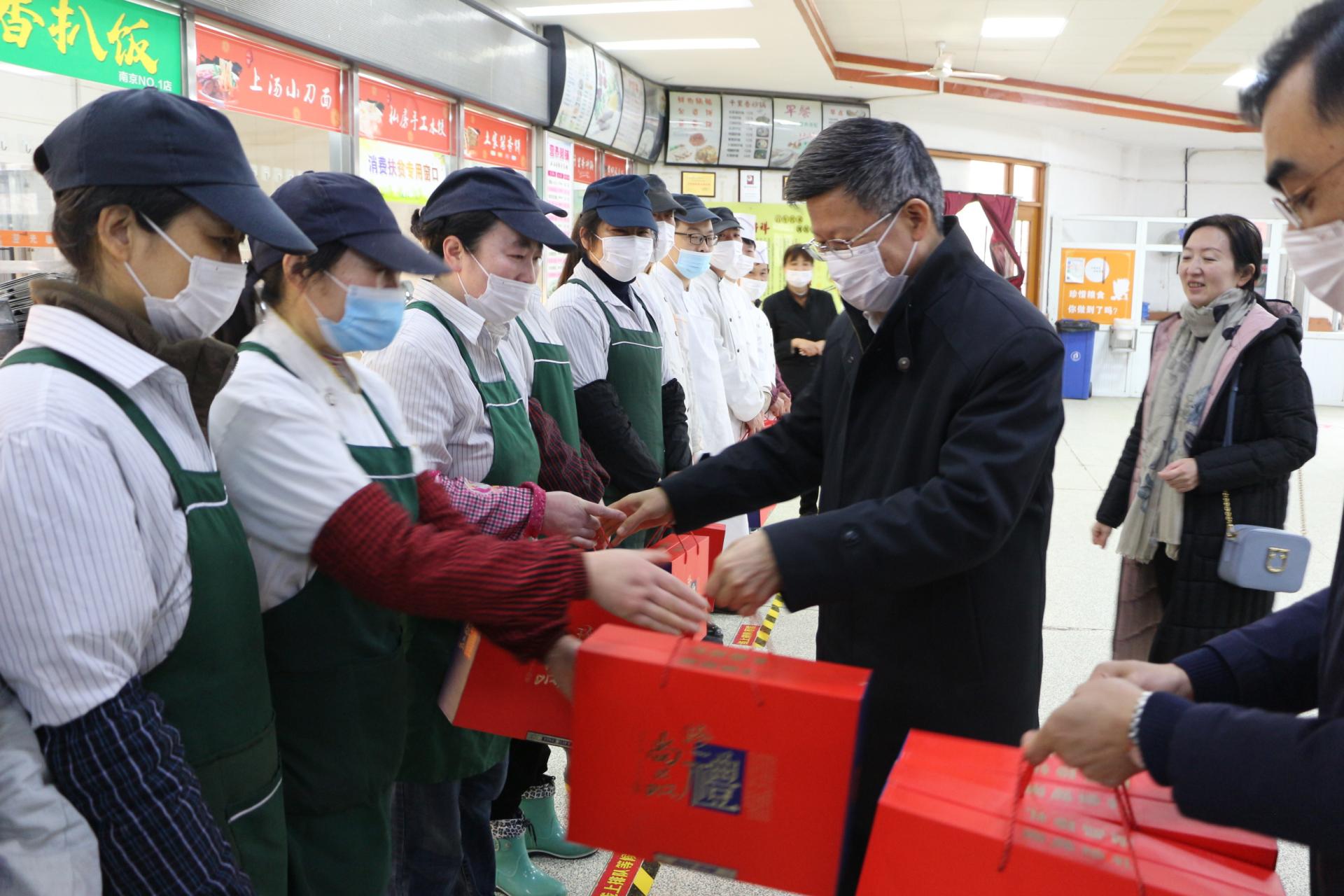 2月5日上午,校黨委書記芮鴻巖、校長喬旭、副校長鞏建鳴走訪慰問了寒假期間堅守崗位、辛勤工作的教職員工,為他們送上新春祝福。