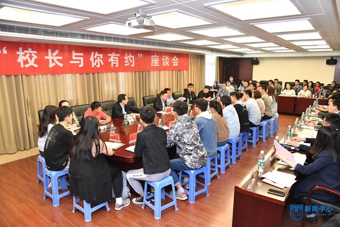 為進一步貫徹落實全國高校和學校思想政治工作會議精神, 4月25日下午,學校在行政樓104會議室舉行“校長與你有約”座談會。校領導芮鴻巖、喬旭、崔益虎、張進明,黨委辦公室、校長辦公室、黨委宣傳部、黨委學生工作部、教學事務部、黨委研究生工作部、后勤服務部、團委、后勤服務集團負責人和33名學生代表參加座談會。