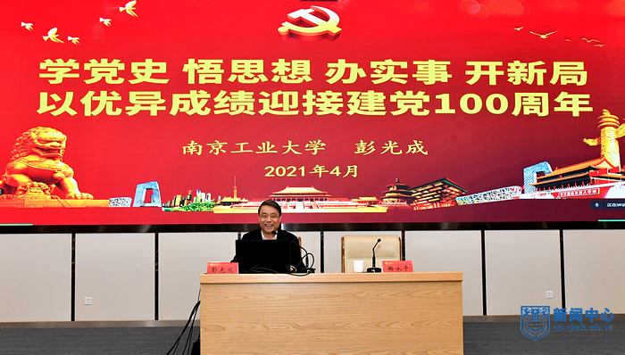 校黨史學習教育宣講團成員、黨建指導員、化工學院原黨委書記彭光成作首場宣講