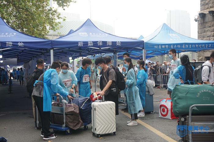 學校想新生之所想,努力提供高效的“一站式”報到服務。根據常態化疫情防控要求,按照“錯峰分批、優化流程、精準服務、安全有序”原則,全面升級“智慧迎新”。報到日,啟用線上報到系統,新生通過手機端、電腦端提交健康碼、行程碼、核酸檢測證明等信息,經掃碼確認即可進入校園,報到手續方便快捷。相關部門通力合作,建設大數據平臺,可以實時精準掌握所有新生報到情況;制作“2021級新生報到流程”動畫視頻等,讓新生提前了解入學注意事項;推出“VR云端校園”模塊,組織新生和家長云參觀校園。