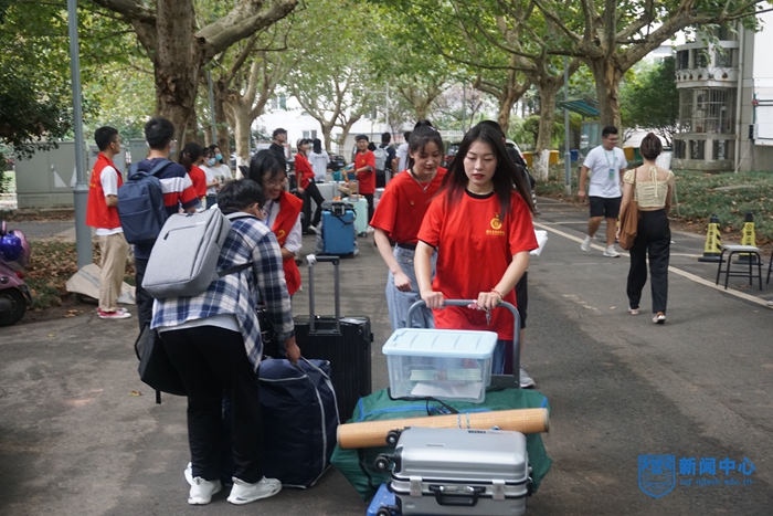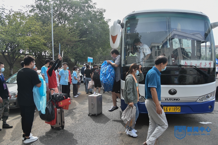 學校還抓住契機,將思想政治教育融入迎新工作中。學生工作處組織國旗護衛隊成員跟車宣講校史校情,舉辦本科新生集體生日會,研究生院組織導師為部分研究生新生送上精心準備的科研專屬“入學禮”,黨委宣傳部組織紅歌快閃、合影打卡等活動,在接駁車上播放“劉老師說黨史”專題片,將愛黨愛國愛校教育、感恩教育等與迎新工作有機融合。