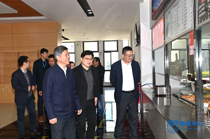 芮鴻巖書記先后來到工業基礎實訓樓、專業學科實訓樓、學生宿舍和食堂,對中心的基本建設、教學安排、設備配置、文化氛圍、疫情防控、運行保障等方面進行了細致檢查,并與實訓學生親切交流,了解他們在中心的學習生活情況。
