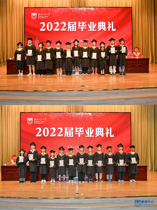 上午9:00,畢業(yè)典禮在莊嚴的國歌聲中拉開帷幕。校黨委書記芮鴻巖宣讀《關(guān)于表彰2022屆優(yōu)秀畢業(yè)研究生的決定》,校黨委副書記崔益虎宣讀《關(guān)于表彰2022屆本科優(yōu)秀畢業(yè)生的決定》,副校長牛生杰宣讀《關(guān)于表彰2022屆留學(xué)生優(yōu)秀畢業(yè)生的決定》,紀委書記王敦寶宣讀《關(guān)于表彰2022年度南京工業(yè)大學(xué)“啟明星計劃畢業(yè)生啟航獎學(xué)金”獲獎學(xué)生的決定》,副校長李世收宣讀《關(guān)于表彰2022年度南京工業(yè)大學(xué)“啟明星計劃西部省區(qū)就業(yè)援助行動”畢業(yè)生的決定》。校領(lǐng)導(dǎo)分別為博士畢業(yè)生代表、優(yōu)秀畢業(yè)研究生代表、本科優(yōu)秀畢業(yè)生代表、留學(xué)生優(yōu)秀畢業(yè)生、“啟明星計劃”獲獎畢業(yè)生代表頒發(fā)證書并授予學(xué)位。