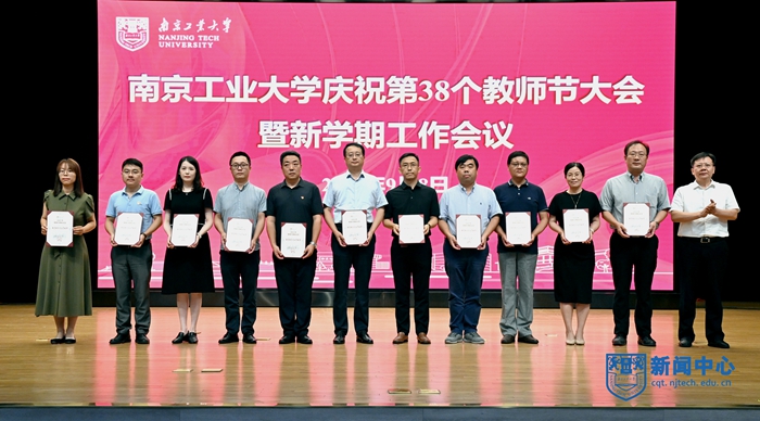 會上對從事高等教育工作滿三十年、服務南京工業大學滿三十年教師以及一年來在人才培養、科學研究、學科建設、黨建、宣傳思想與管理等工作中取得優異成績的先進集體和個人進行了表彰。與會校領導為獲獎集體與教師代表頒發獎牌和榮譽證書。