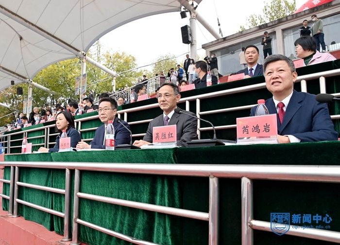 蔣軍成校長致開幕辭。他指出,習近平總書記在黨的二十大報告中強調,要廣泛開展全民健身活動,加快建設體育強國。體育既是國家強盛的應有之義,也是人們健康幸福生活的重要組成部分。體育可以育體、育德,還能育智、育心,在強身健體的同時鍛煉意志、磨礪品質,促進人的全面發展。學校高度重視體育工作,南工大江蘇女壘奪得全國女子壘球一類賽事“十三連冠”以及全運會“三連冠”,打造“校園馬拉松”“健身盛典”等一批特色鮮明的品牌活動,積極營造濃厚的體育文化氛圍。蔣校長號召師生們一起奔跑,在運動中凝聚力量,在拼搏中鼓舞干勁,激勵全校師生強健體魄、昂揚斗志,把體育精神融入到學習工作生活中,融入到建設特色鮮明國內一流國際知名創業型大學的生動實踐中,為熱愛而堅持、為夢想去奮斗,在新征程新賽道上跑出加速度、跨越新高度,共同開創更加美好的未來。
