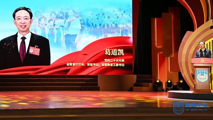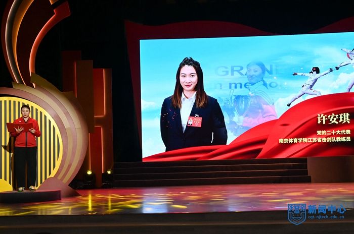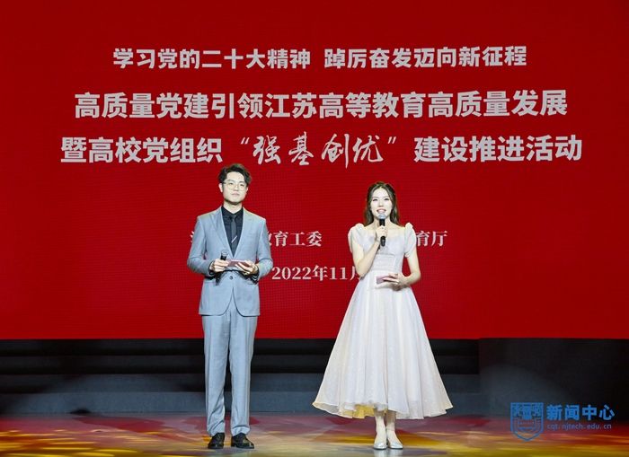 活動現場,省教育廳廳長、黨組書記、省委教育工委書記葛道凱以《深入學習貫徹黨的二十大精神,以信仰之光照亮奮斗之路》為題,為全省高校黨員師生上了一堂微黨課。蘇州大學黨委書記江涌、南京航空航天大學馬克思主義學院黨委書記徐川、南京體育學院擊劍隊教練員許安琪3位黨的二十大代表分別作了主題分享。活動發布了江蘇教育黨建品牌“蘇教先鋒”。活動中,校黨委書記芮鴻巖與范益群、王娜娜、鄒金鈴、滕飛等教師黨員代表以及校大學生話劇團成員共讀共話黨的二十大報告,文化藝術中心方晶晶老師演唱歌曲《不忘初心》,李婉同學擔綱活動女主持。
