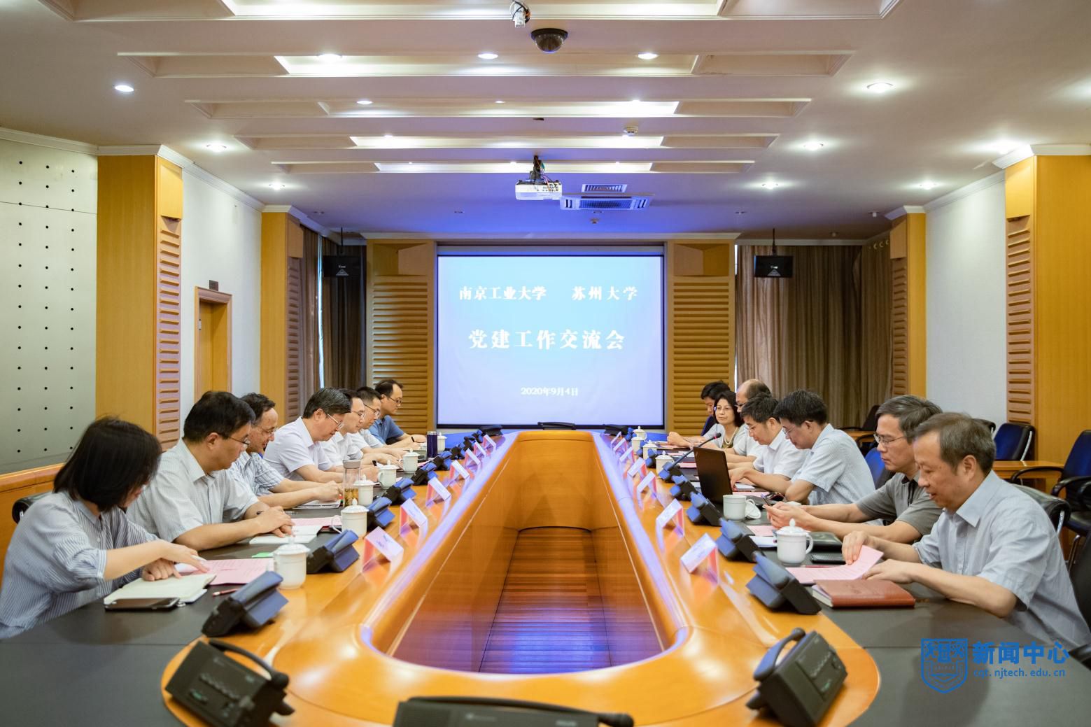 蘇州大學黨委書記江涌在天賜莊校區歡迎芮書記一行并主持調研交流會。江涌書記表示,南京工業大學辦學特色鮮明,近年來在黨建工作和事業發展方面都取得了豐碩成果,期待雙方進一步加強合作交流,攜手推進學校事業發展。蘇州大學黨委副書記鄧敏介紹了蘇州大學“十三五”發展情況及“十四五”規劃編制情況。黨委組織部、黨委宣傳部、黨委統戰部負責同志分別就蘇州大學在基層黨建、干部隊伍建設、校內綜合考核、宣傳思想文化建設、意識形態、統一戰線等工作介紹了經驗做法。