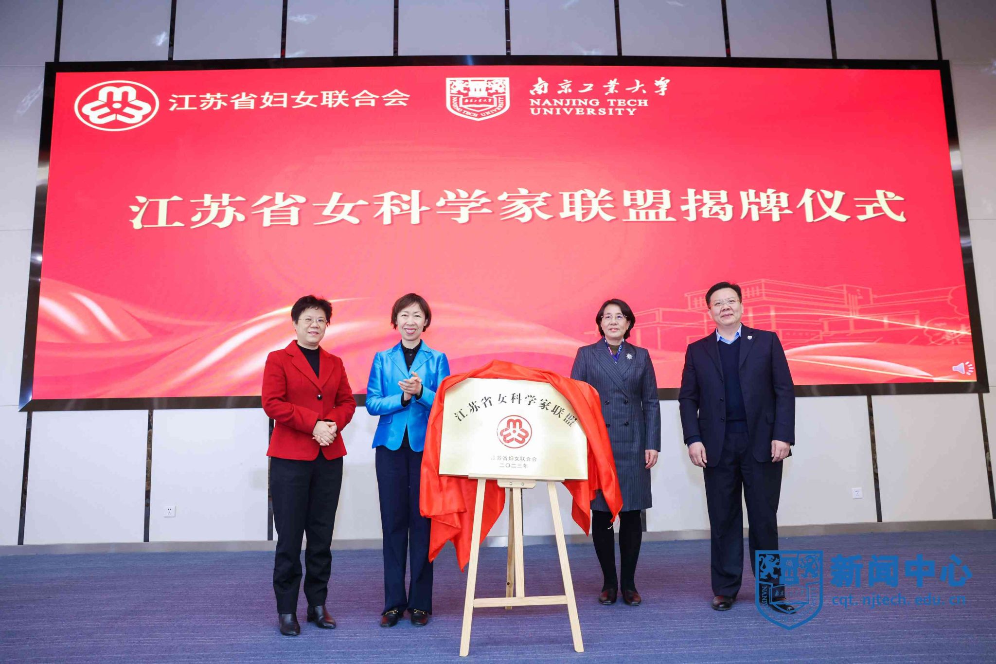 活動現場,朱勁松、施郁佩、蔣軍成、邢衛紅共同為江蘇省女科學家聯盟揭牌。中國科學院紫金山天文臺李婧、我校胡永紅教授,南京天詩新材料科技有限公司總經理于海闊、江蘇潤果農業發展有限公司董事長魏巧分別做了學術和創業交流分享。