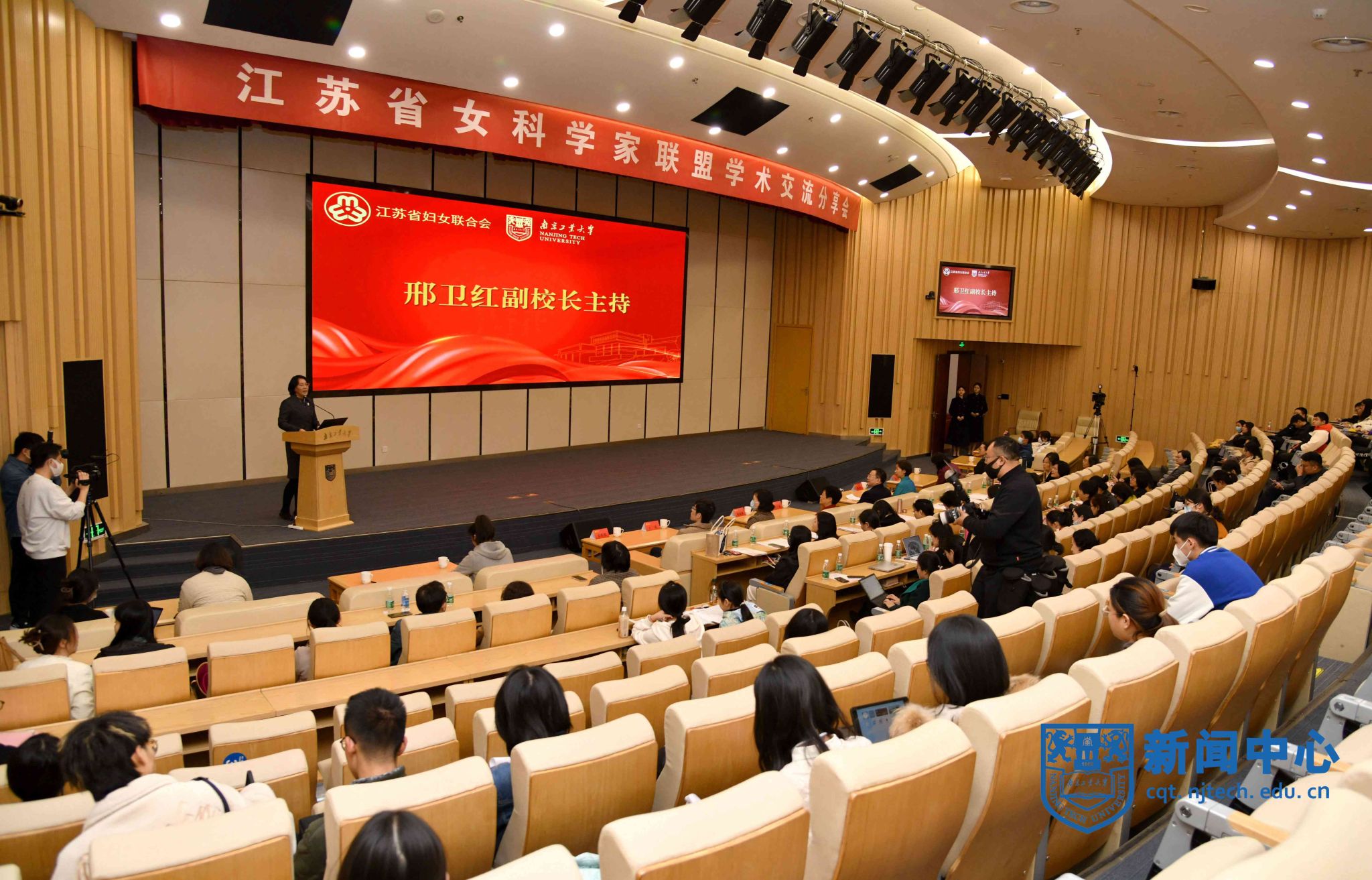 3月26日下午,由江蘇省婦女聯合會主辦的“科創她力量,建功新時代”江蘇省女科學家聯盟學術交流分享會在我校舉行。省婦聯黨組書記、主席朱勁松,省婦聯二級巡視員施郁佩,校長蔣軍成出席會議。江蘇省女科學家聯盟理事長、副校長邢衛紅主持會議。