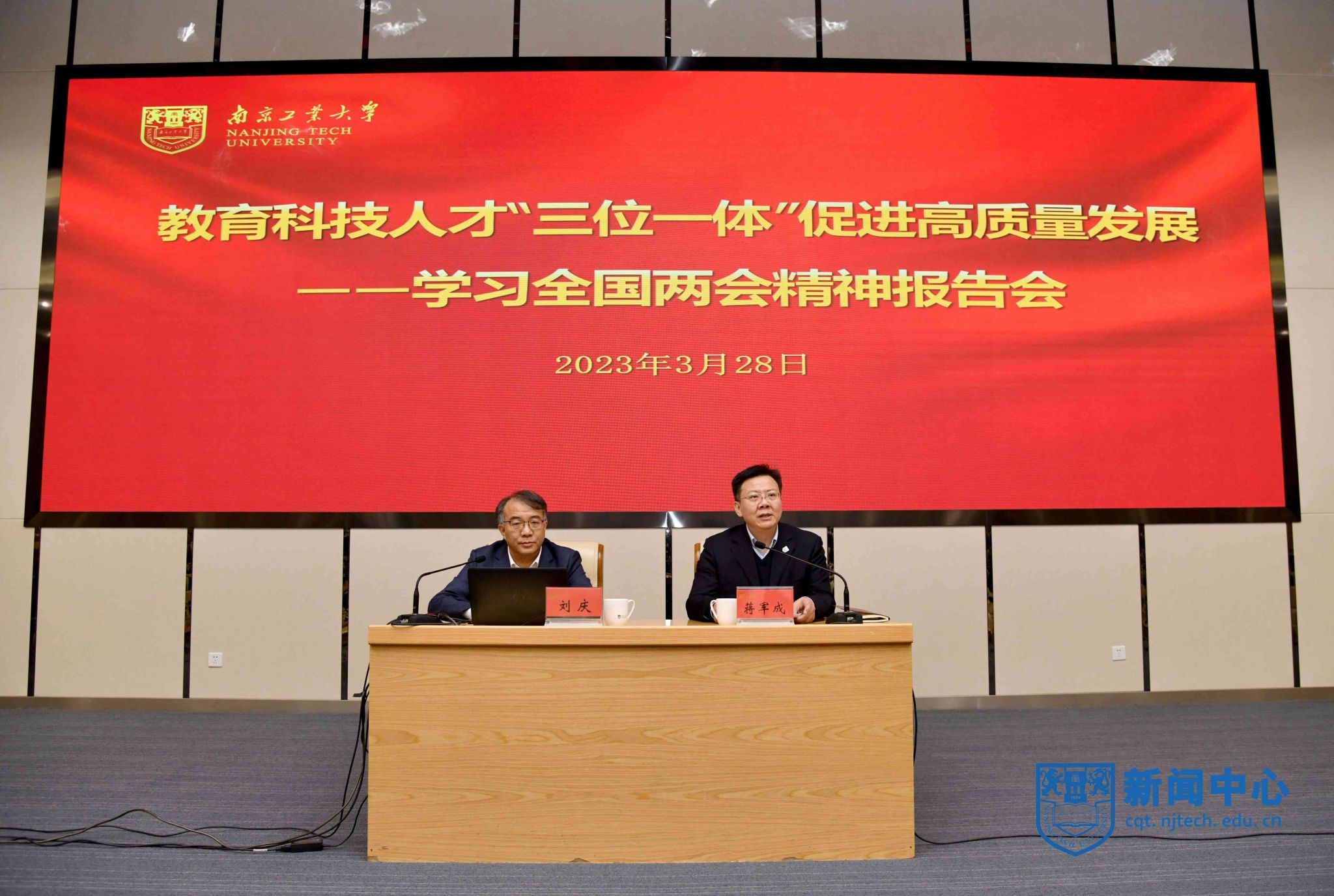 蔣校長(zhǎng)強(qiáng)調(diào),全校師生要深入學(xué)習(xí)貫徹習(xí)近平總書記重要講話精神和全國(guó)兩會(huì)精神,更加緊密地團(tuán)結(jié)在以習(xí)近平同志為核心的黨中央周圍,深刻領(lǐng)悟“兩個(gè)確立”的決定性意義,增強(qiáng)“四個(gè)意識(shí)”、堅(jiān)定“四個(gè)自信”、做到“兩個(gè)維護(hù)”。要深入貫徹落實(shí)黨中央重大決策部署,深刻領(lǐng)會(huì)教育、科技、人才是全面建設(shè)社會(huì)主義現(xiàn)代化國(guó)家的基礎(chǔ)性、戰(zhàn)略性支撐,在奮力譜寫特色鮮明國(guó)內(nèi)一流國(guó)際知名創(chuàng)業(yè)型大學(xué)建設(shè)新征程上踔厲奮發(fā)、勇毅前行,為實(shí)現(xiàn)高水平科技自立自強(qiáng)、推進(jìn)中國(guó)式現(xiàn)代化江蘇新實(shí)踐貢獻(xiàn)南工大力量。
