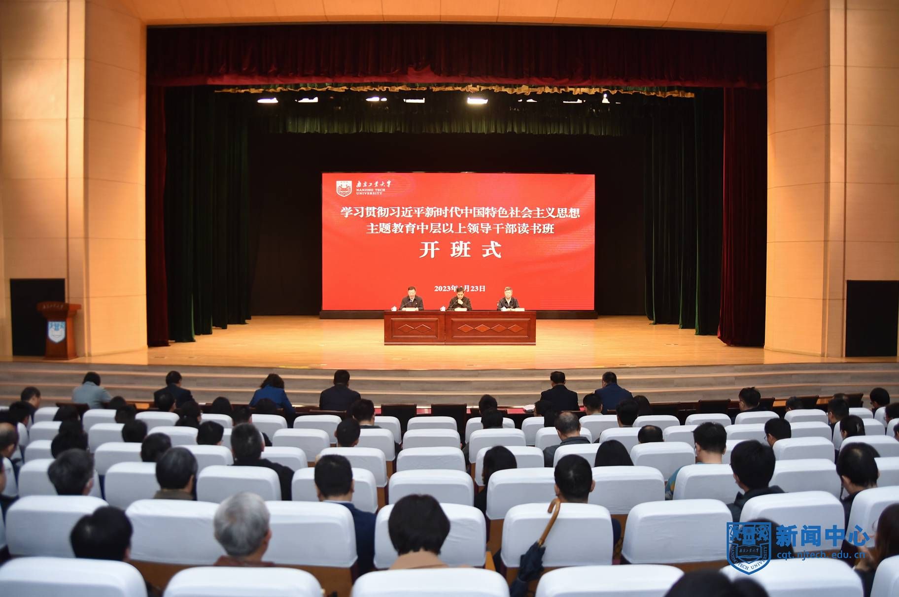 4月23日上午,根據主題教育總體安排,學校舉行學習貫徹習近平新時代中國特色社會主義思想主題教育讀書班開班式暨首場報告會。校長、主題教育領導小組副組長蔣軍成作開班動員。校黨委書記、主題教育領導小組組長芮鴻巖作首場報告。省委主題教育第十八巡回指導組組長、南京師范大學原黨委副書記、校長陳國祥到會指導。