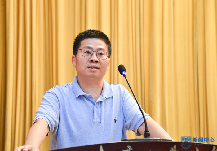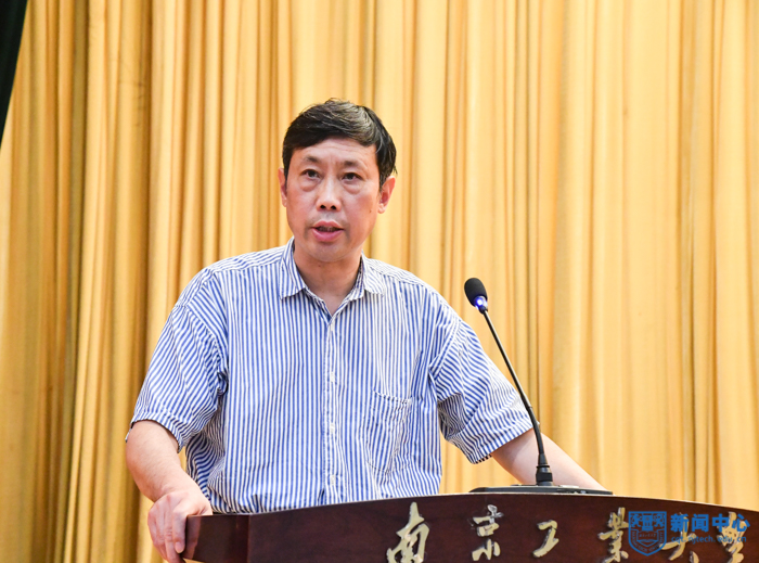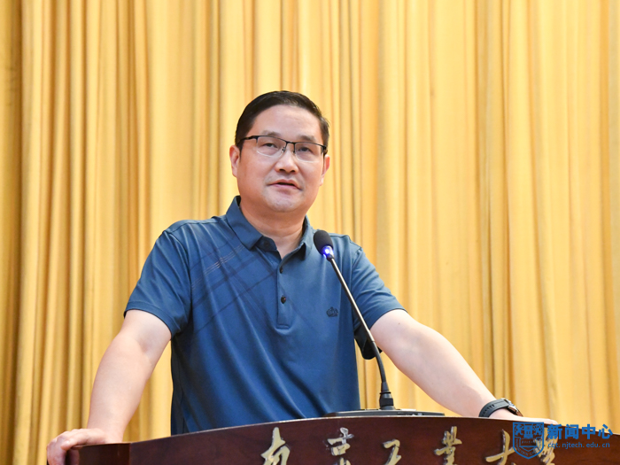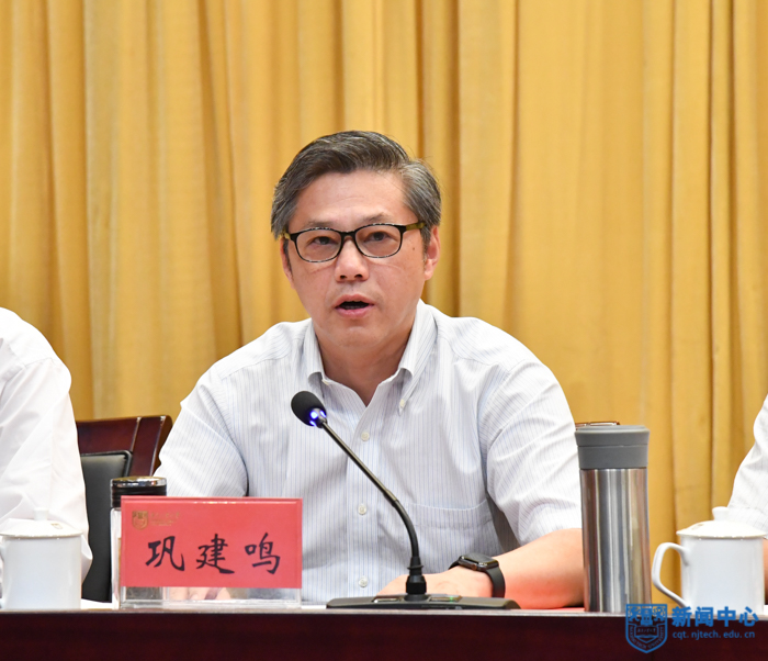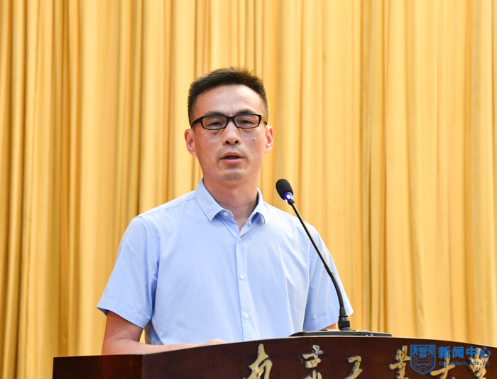 副校長鞏建鳴宣讀《關于表彰周勇軍等十三位同志從事高等教育工作滿三十年的通知》《關于表彰榮梅等三位同志服務南京工業大學滿三十年的通知》