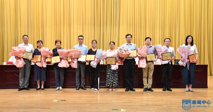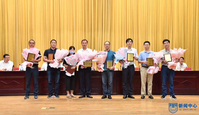 會上,校黨委副書記吳勝紅宣讀了《關于表彰2019-2020學年人才培養工作成績顯著的教師和集體的決定》,副校長牛生杰宣讀了《關于表彰2019-2020學年科學研究工作成績顯著的教師和集體的決定》,副校長李世收宣讀了《關于表彰校第十三屆“師德十佳”的決定》,副校長鞏建鳴宣讀了《關于表彰周勇軍等十三位同志從事高等教育工作滿三十年的通知》《關于表彰榮梅等三位同志服務南京工業大學滿三十年的通知》。與會校領導為獲獎集體和個人頒發了獎牌和榮譽證書。