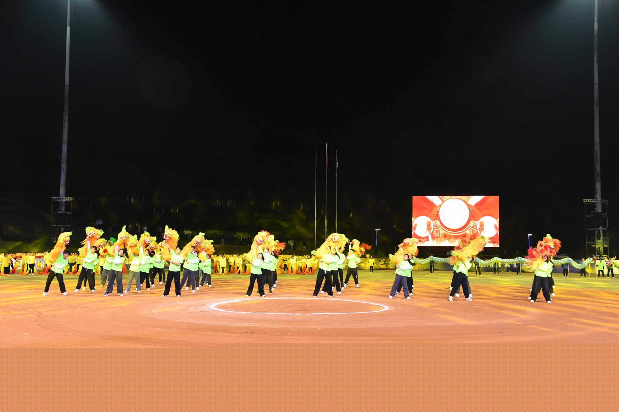 儀式正式開始前,由校大學生舞龍、江浦手獅俱樂部和300余名同學組成團體操方隊奉上了精彩的暖場表演??磁_上1800余個座位座無虛席,同學們為精彩表演喝彩,為每支入場的球隊歡呼鼓掌。