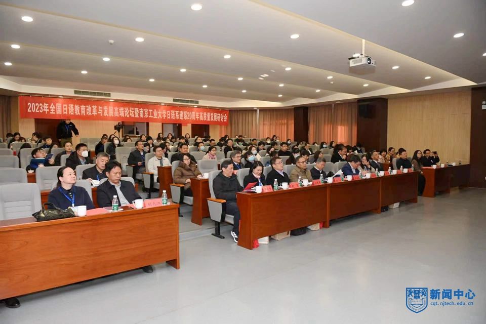 12月2日,2023年全國日語教育改革與發(fā)展論壇暨南京工業(yè)大學(xué)日語系建系20周年高質(zhì)量發(fā)展研討會在我校舉辦。教育部高等學(xué)校外國語言文學(xué)類專業(yè)教學(xué)指導(dǎo)委員會日語分委會主任修剛,副主任委員邱鳴、許宗華,委員陳多友、高潔、吳玲、趙霞、王奕紅,江蘇高校外語教學(xué)研究會日語分會會長劉克華,校黨委書記芮鴻巖,副校長劉大衛(wèi)出席會議。校黨委副書記吳勝紅主持會議開幕式。