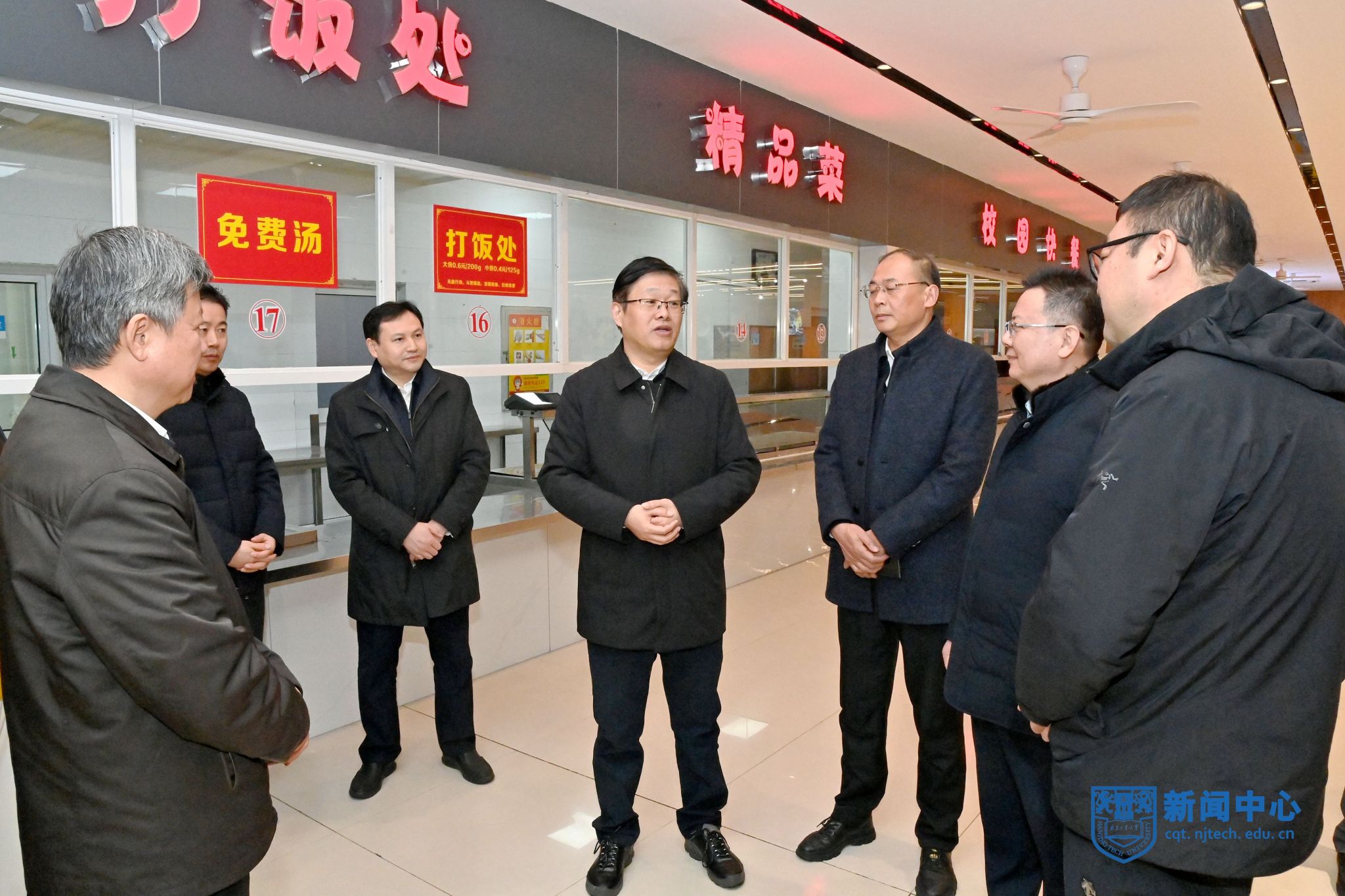 1月18日,江蘇省市場監管局局長、黨組書記沈海斌,南京市政府秘書長鄭曉明,南京市市場監管局局長、黨組書記時新峰及相關處室、轄區負責人來校調研檢查校園食品安全工作。校領導芮鴻巖、蔣軍成、郭萬牛陪同調研檢查。