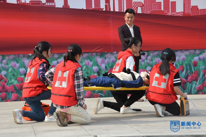 5月5日,校紅十字會大學生現場救護隊建筑學院分隊的7名救護隊員參加浦口區以“弘揚紅十字精神 奉獻紅十字力量”為主題的紀念新修訂《中華人民共和國紅十字會法》頒布實施暨“5.8世界紅十字日”廣場宣傳活動。