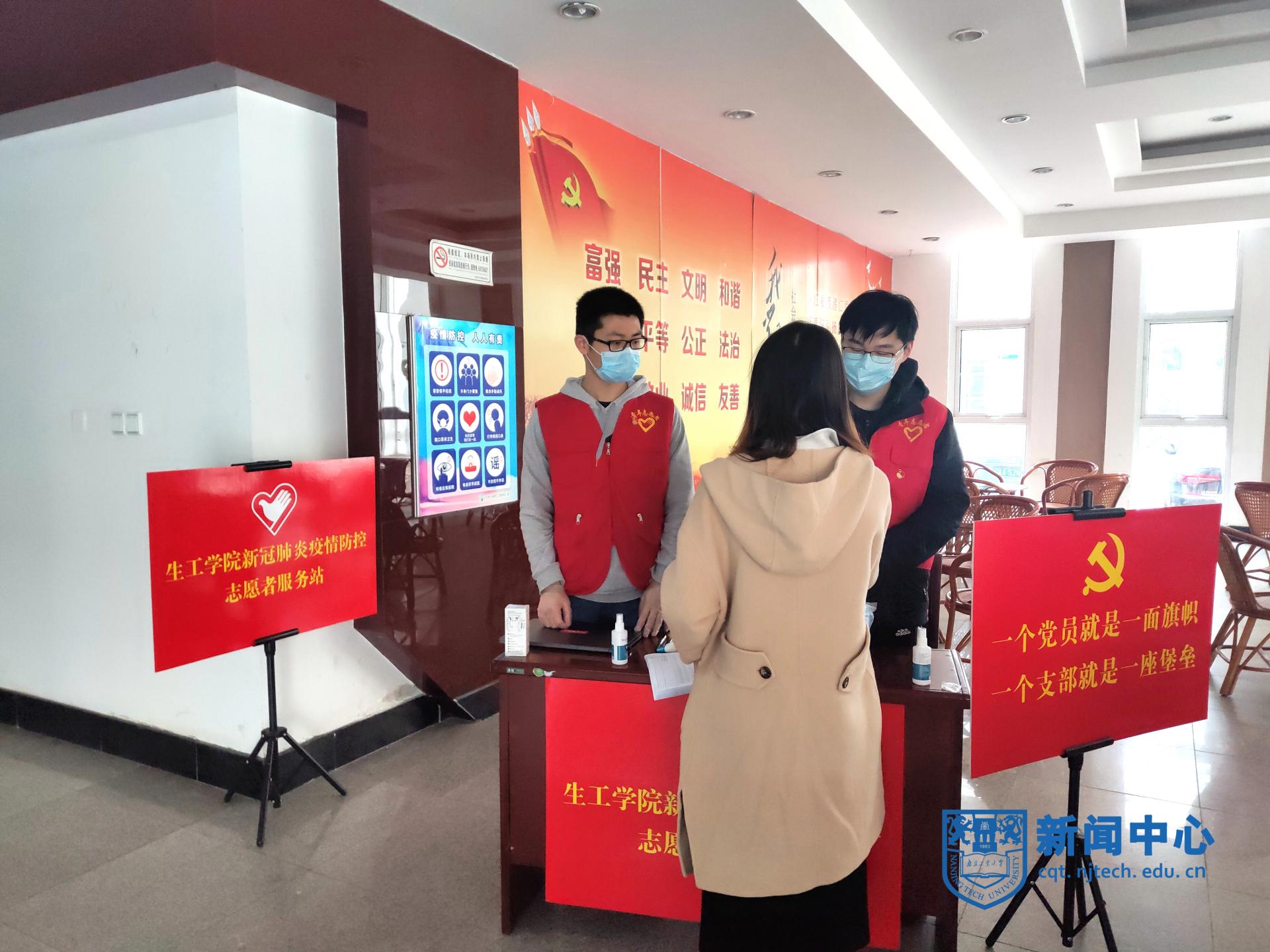 4月22日,生物與制藥工程學院部分實驗室開始有序錯峰開放。早晨7時,由學院研究生、本科生畢業班黨員自發組成的志愿者隊伍在生工學科樓一樓大廳開展疫情防控期間體溫檢測工作。