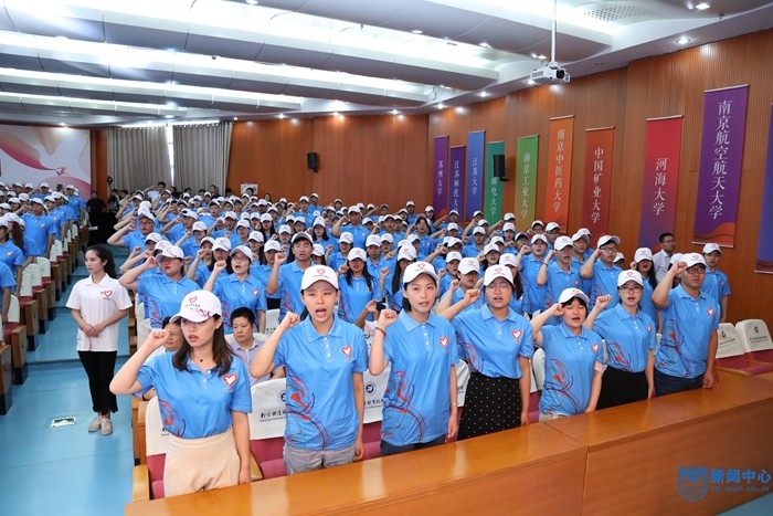 7月20日,2018年江蘇大學生志愿服務西部計劃、蘇北計劃出征儀式在南京鐵道職業技術學院舉行。團中央青年志愿者行動指導中心項目管理處處長楊業功、團省委書記王偉等領導出席儀式,我校“兩個計劃”志愿者代表在校團委副書記費軍的帶領下參加了儀式。