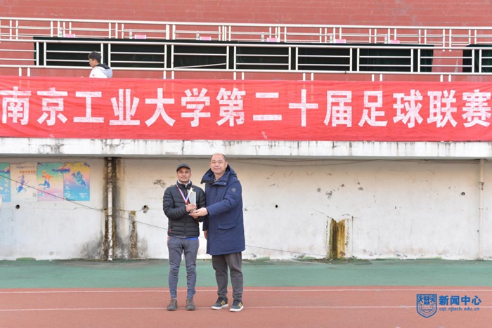體育學院群體競賽中心主任趙飛老師為季軍海外教育學院代表隊頒獎