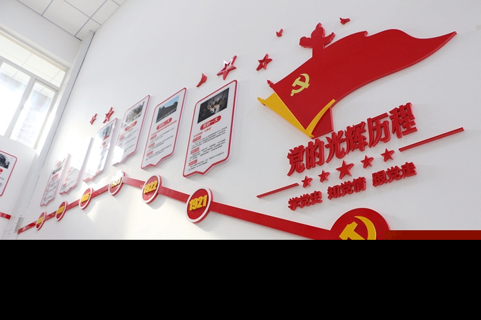 “黨史文化”長廊重點介紹了中國共產黨一大到十九大的歷屆代表大會召開情況、重要內容及其歷史意義,謳歌了中國共產黨帶領中國人民從一個勝利走向另一個勝利的光輝歷程。