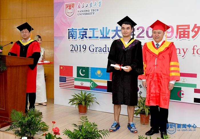 6月21日下午,我校首屆外國(guó)留學(xué)生畢業(yè)典禮在江浦校區(qū)逸夫圖書館五樓報(bào)告廳隆重舉行。校長(zhǎng)喬旭、副校長(zhǎng)牛生杰、相關(guān)職能部門及海外教育學(xué)院負(fù)責(zé)人和2019屆全體外國(guó)留學(xué)畢業(yè)生及家長(zhǎng)代表參加典禮。