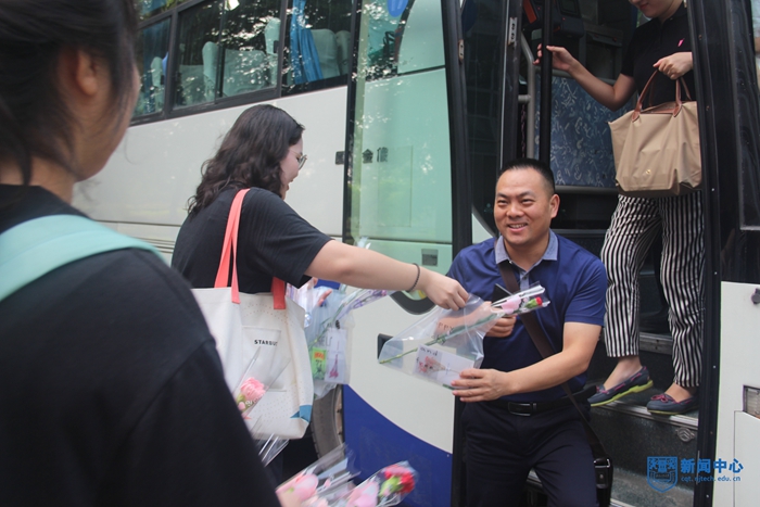 9月10日清晨7點半,第一班校車緩緩駛入厚學停車點。同學們走向下車點,為每位老師獻上鮮花和潤喉糖。校學生會和手語社同學表演手語舞蹈快閃《感恩的心》,并向老師深情道一聲:“老師,您辛苦了!”