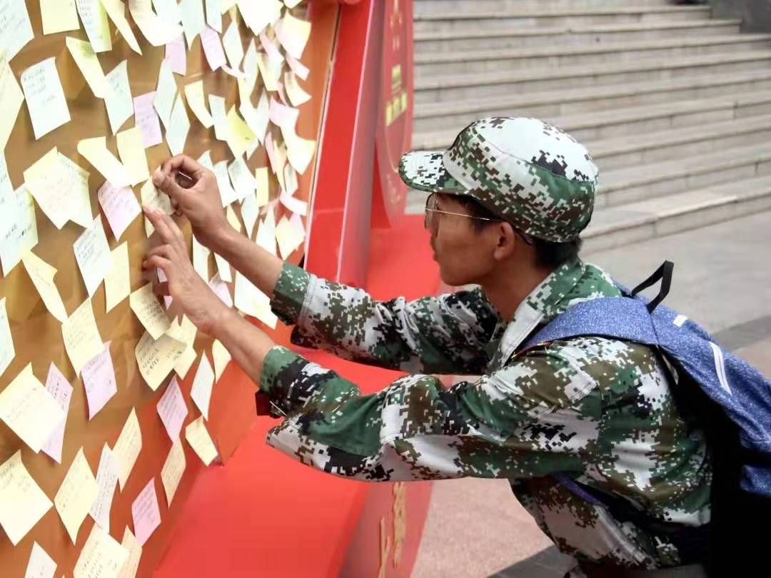 9月24日,校學生會制作戶外“表白墻”和手幅,500余名青年學生親手為祖國寫下祝福,并手舉手幅大聲表達對祖國的熱愛。