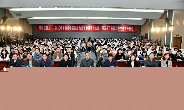10月29日晚,“青春在路上”2019年暑期社會實踐分享會暨第十九屆“明發杯”校園科技文化節開幕式在圖書館一樓報告廳舉辦。校黨委常委、副校長吳勝紅,相關職能部門和學院負責人、各學院團委書記和學生代表參加了活動。