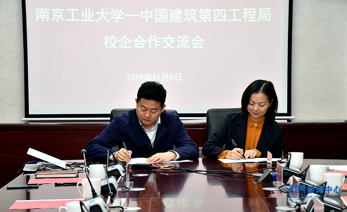 校學生事務部部長黎能進與中建四局人力資源部總經理包正江簽署了“南京工業大學-中國建筑第四工程局全面合作協議”。