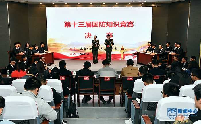 為進一步強化大學(xué)生愛國主義教育,落實《新時代愛國主義教育實施綱要》精神,提升大學(xué)生的國家安全意識、國防觀念和憂患意識,提高大學(xué)生的核心素養(yǎng)與綜合能力,11月22日晚,由黨委人民武裝部、校團委主辦,海鷹社承辦的第十三屆國防知識競賽決賽在逸夫圖書館一樓報告廳舉行。黨委人民武裝部、校團委、學(xué)生國防教育與團隊建設(shè)研究中心等部門負責人,部分軍事理論課教師,參賽學(xué)院領(lǐng)隊老師及學(xué)生代表參加并觀摩了比賽。