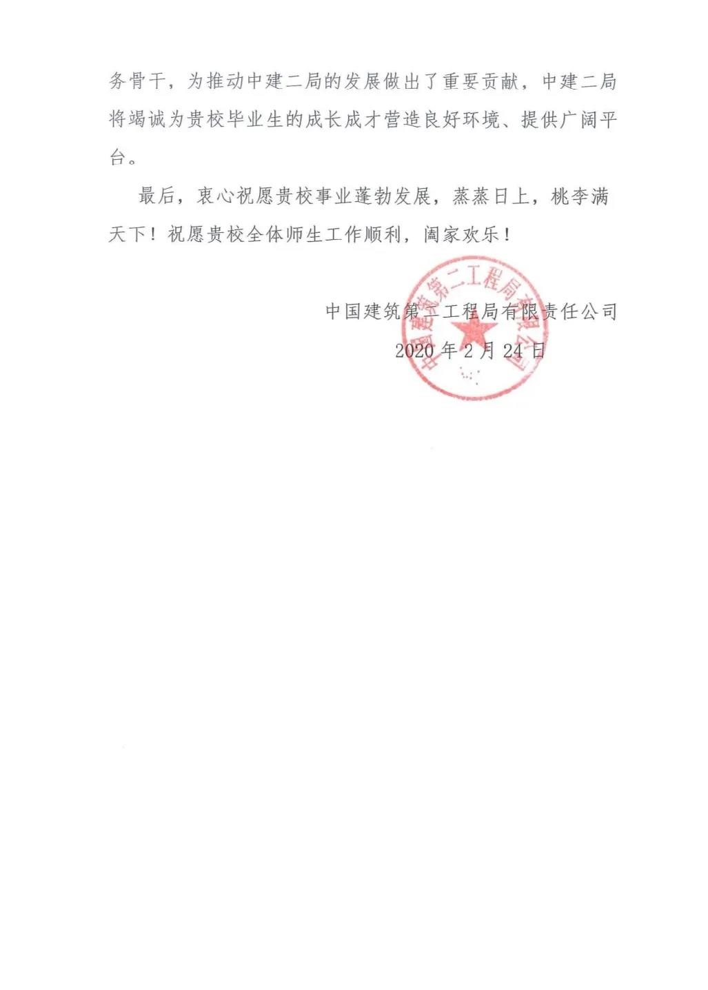 戰“疫”暖心事┃關鍵時刻,中建二局致信感謝我校