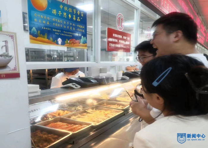 學生剛剛返校,2022年的中秋節又遇上教師節,廣大學子在學校過節,為了能給廣大學子們送去“家”的關懷,餐飲中心精心準備了此次活動。“南工主題月餅”或水果等小禮品一份,傳達的不僅是美味,更是餐飲服務中心對留校師生們的一份關心和熱心,讓學生甜在舌尖、暖在心里,也希望同學們能夠在我們食堂感受到家的溫暖。”餐飲中心一食堂負責人對來食堂就餐的同學們說道。同時,為解學子們思鄉之情,弘揚傳統節日飲食文化,滿足廣大學生節日“舌尖上的需求”,餐飲服務中心開設傳統節日菜品專窗,為同學們精心準備了“游子思鄉菜”。每道菜都飽含傳統節日的寓意:荷葉粉蒸肉(游學離家)、桂花糖藕(子逢佳節)、白煮菱角(思親念友)、香芋扣肉(鄉遇故知)、素炒藕片(此物最相思)、肉丸子(天涯共此時)...既好吃又有趣。這些看似普通的美食卻有家的味道,讓團圓佳節身在異鄉的學子感受到濃濃的家的味道,為佳節再添濃濃的氛圍。