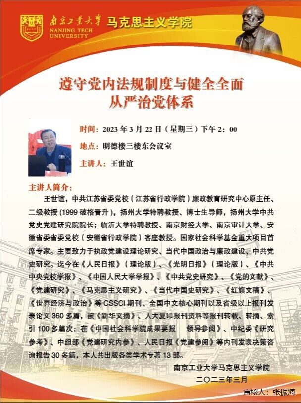 報告人簡介:王世誼,中共江蘇省委黨校(江蘇省行政學院)廉政教育研究中心原主任、二級教授(1999破格晉升),揚州大學特聘教授、博士生導師,揚州大學中共黨史黨建研究院院長;臨沂大學特聘教授、南京財經大學、南京審計大學、安徽省委省委黨校(安徽省行政學院)客座教授。國家社會科學基金重大項目首席專家。主要致力于執政黨建設理論研究、當代中國政治與廉政建設、中共黨史研究。迄今在《人民日報》(理論版)、《光明日報》(理論版)、《中共中央黨校學報》、《中國人民大學學報》、《中共黨史研究》、《黨的文獻》、《黨建研究》、《馬克思主義研究》、《當代中國史研究》、《紅旗文稿》、《世界經濟與政治》等CSSCI期刊、全國中文核心期刊以及省級以上報刊發表論文360多篇,被《新華文摘》、人大復印報刊資料等報刊轉載、轉摘、索引100多篇次;在《中國社會科學院成果要報?領導參閱》、中紀委《研究參考》、中組部《黨建研究內參》、人民日報《黨建參閱》等內刊發表決策咨詢報告30多篇,本人共出版各類學術專著13部。