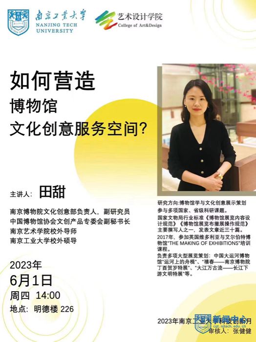 田甜,南京博物院文化創意部負責人,副研究員,中國博物館協會文創產品專委會副秘書長。研究方向:博物館學與文化創意展示策劃,南京藝術學院校外教師,參與多項國家、省級科研課題,是國家文物局行業標準《博物館展覽內容設計規范》《博物館展覽布撤展操作規范》主要撰寫人之一,發表文章近三十篇。2017年參加英國維多利亞與艾爾伯特博物館“The Making of Exhibitions”培訓課程。