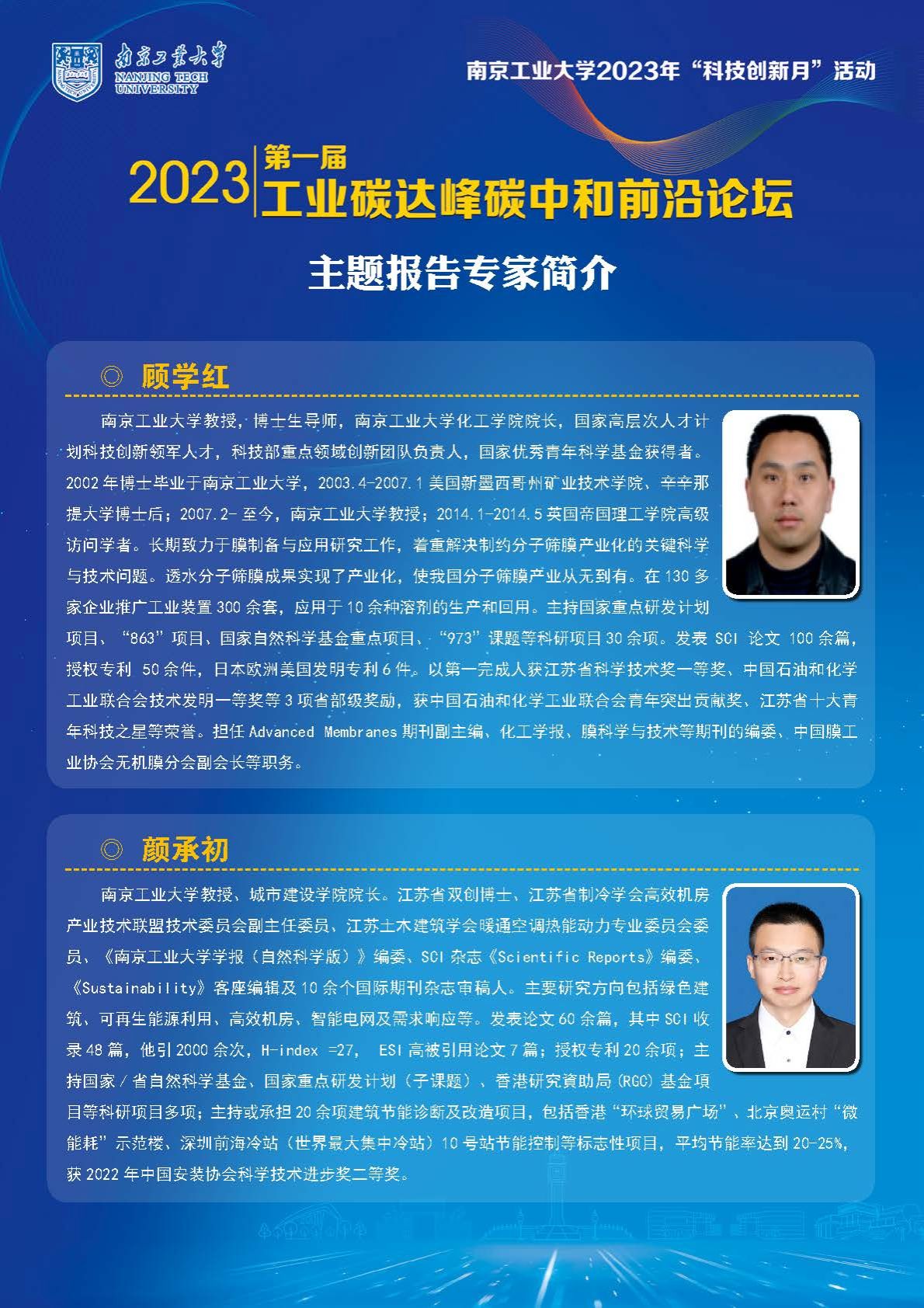 6月3日 16:40-18:20 | 報告人:顧學紅教授(南京工業大學) 主 題:雙碳背景下的化工學科建設-以膜分離為核心的低碳流程再造方向布局與思考 | 弘毅樓(國家重點實驗室)五樓報告廳 | |
