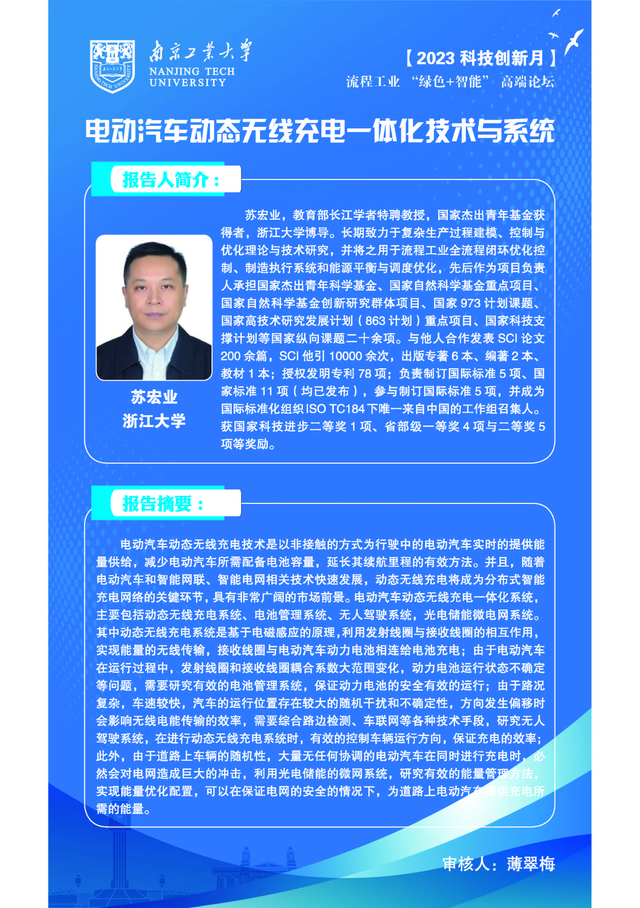 1 | 蘇宏業 | 教育部特聘教授,國家杰出青年基金獲得者,浙江大學博導 | 電動汽車動態無線充電一體化技術與系統 |