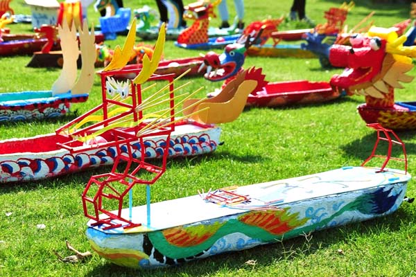 [中國江蘇網]南工君子湖畔41只混凝土龍舟競技迎端午