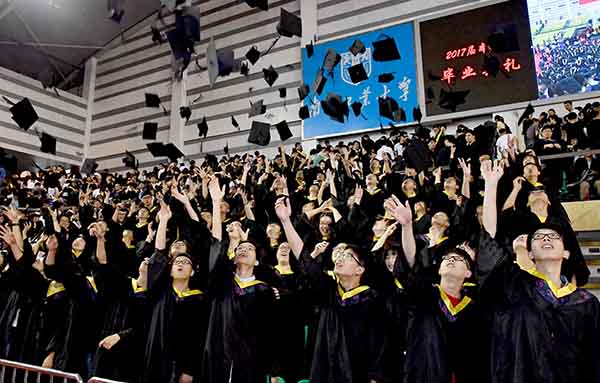 梅雨踩著畢業的步伐而來,連綿的雨水加重了畢業的離愁。6月22日,南京工業大學江浦校區體育館內,2017屆本科生畢業典禮正在舉行。