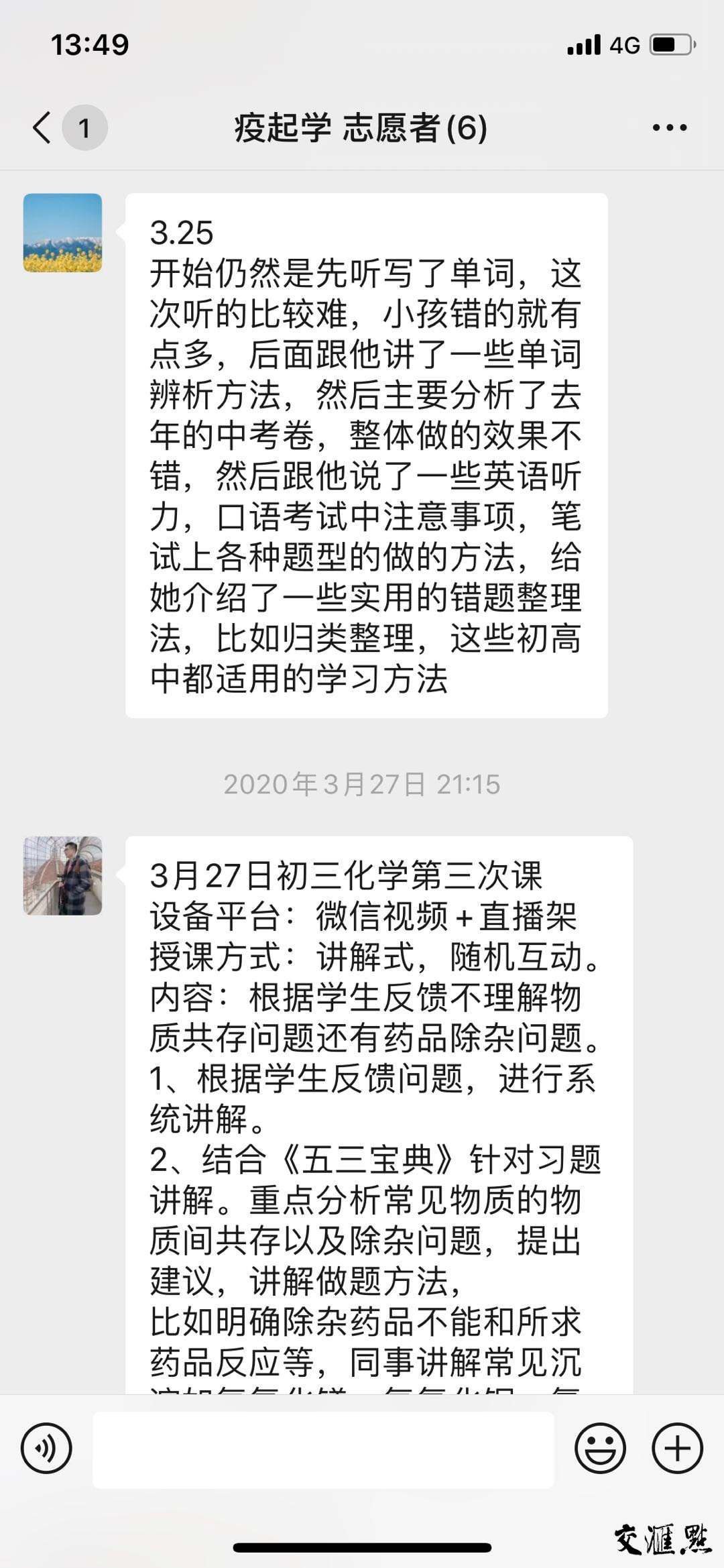 活動信息發布后,3月6日,江蘇省醫藥公司的一名員工聯系到陳晨,他在公司負責物資供應工作,妻子在基層醫院,因為疫情的緣故夫妻倆都要奮斗在抗“疫”一線,基本不著家,家里有一個今年面臨中考的初三學生小宇急需學業指導。在多次溝通和各方的支持下,陳晨、佟京達老師和三名大學生志愿者組成的“家教團隊”迅速為學生量身打造了一套適合小宇的學業輔導方案。從3月9日開始,每天晚上安排一位老師通過微信視頻,面對面給小宇輪流上課,輔導科目涵蓋化學、英語、數學、物理等課程。