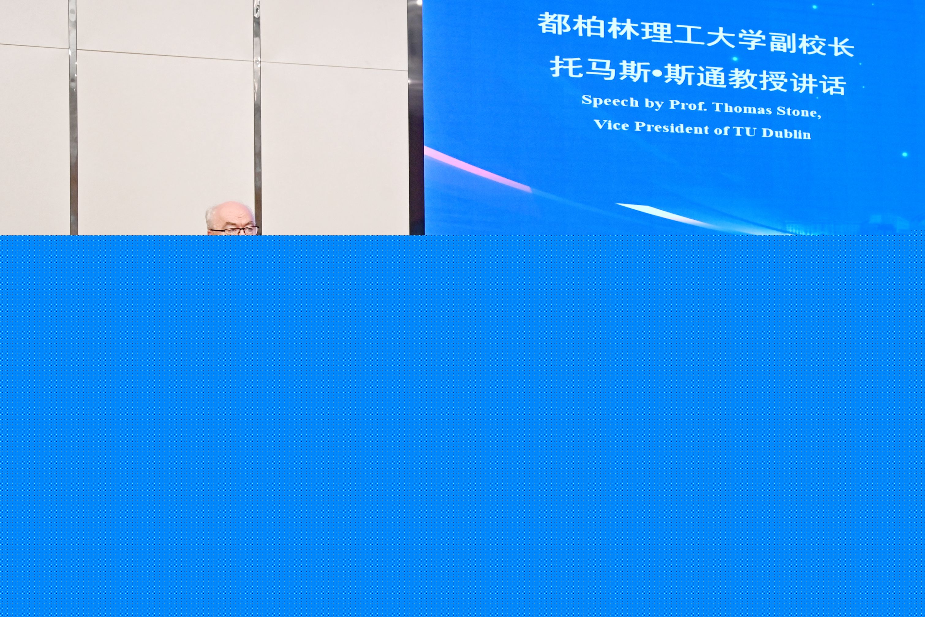 蔣軍成對都柏林理工大學代表團的到訪表示歡迎,對獲得雙方學位的畢業生表示熱烈祝賀,他寄語畢業生要在世界賽場上接力奔跑,起好步、成為孜孜不輟的追光者,過好彎、成為美美與共的聚光者,接好棒、成為灼灼如炬的閃光者,學成回國,為國增光。
