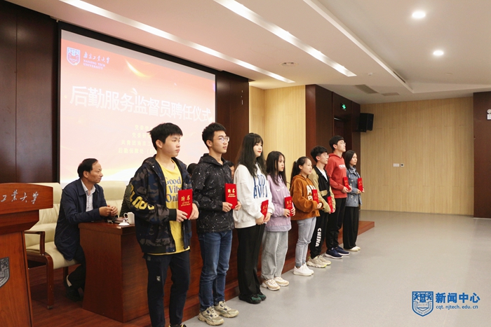 會上,后勤黨委書記陳娟宣讀了《關于聘請吳多璧等42名學生擔任2020年南京工業大學后勤服務監督員的決定》,與會領導為被聘任的學生頒發聘任證書,并合影留念。后勤服務監督員代表楊璠同學發言,她表示作為學校后勤聘請的后勤服務監督員,他們將提高認識,加強自我約束,認真履行監督職責,做好參謀員、宣傳員、調解員,發揮好橋梁和紐帶作用。