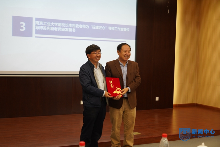 副校長(zhǎng)李世收為“砼建匠心”導(dǎo)師工作室首位導(dǎo)師蘇憲新頒發(fā)聘書(shū)
