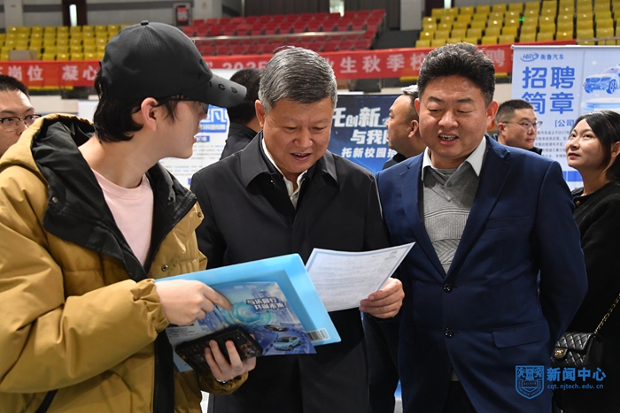 招聘會現場,芮鴻巖詳細詢問企業的用人需求和招聘情況,并與現場求職的部分同學進行交流,了解他們的就業意愿,征求同學們對學校就業工作的意見和建議,并給大家送上了美好祝愿。